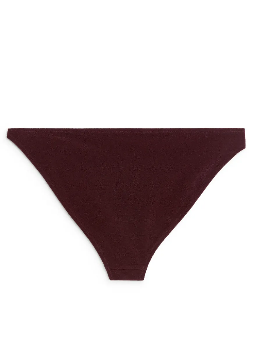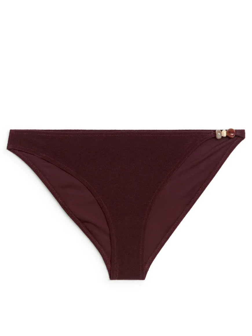 Bikini bottom in a soft jersey crêpe fabric with bead detailing at the side. A mid-waist style with high-cut leg opening. Fully lined.