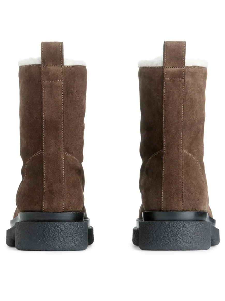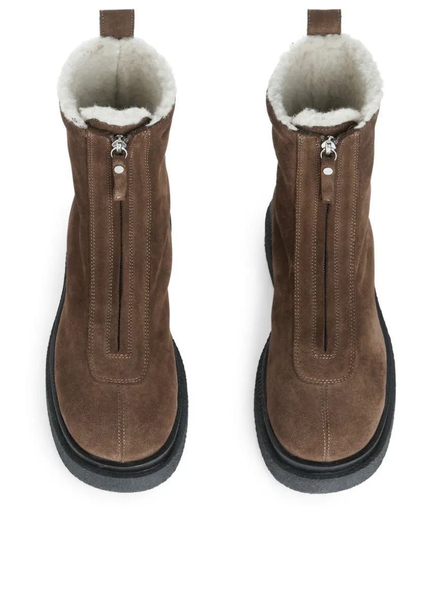 Leather boots with a faux fur lining. A mid-high style with zip detail at front and a chunky rubber sole. The leather used has undergone a chrome-free tanning process.