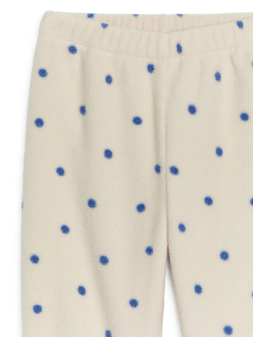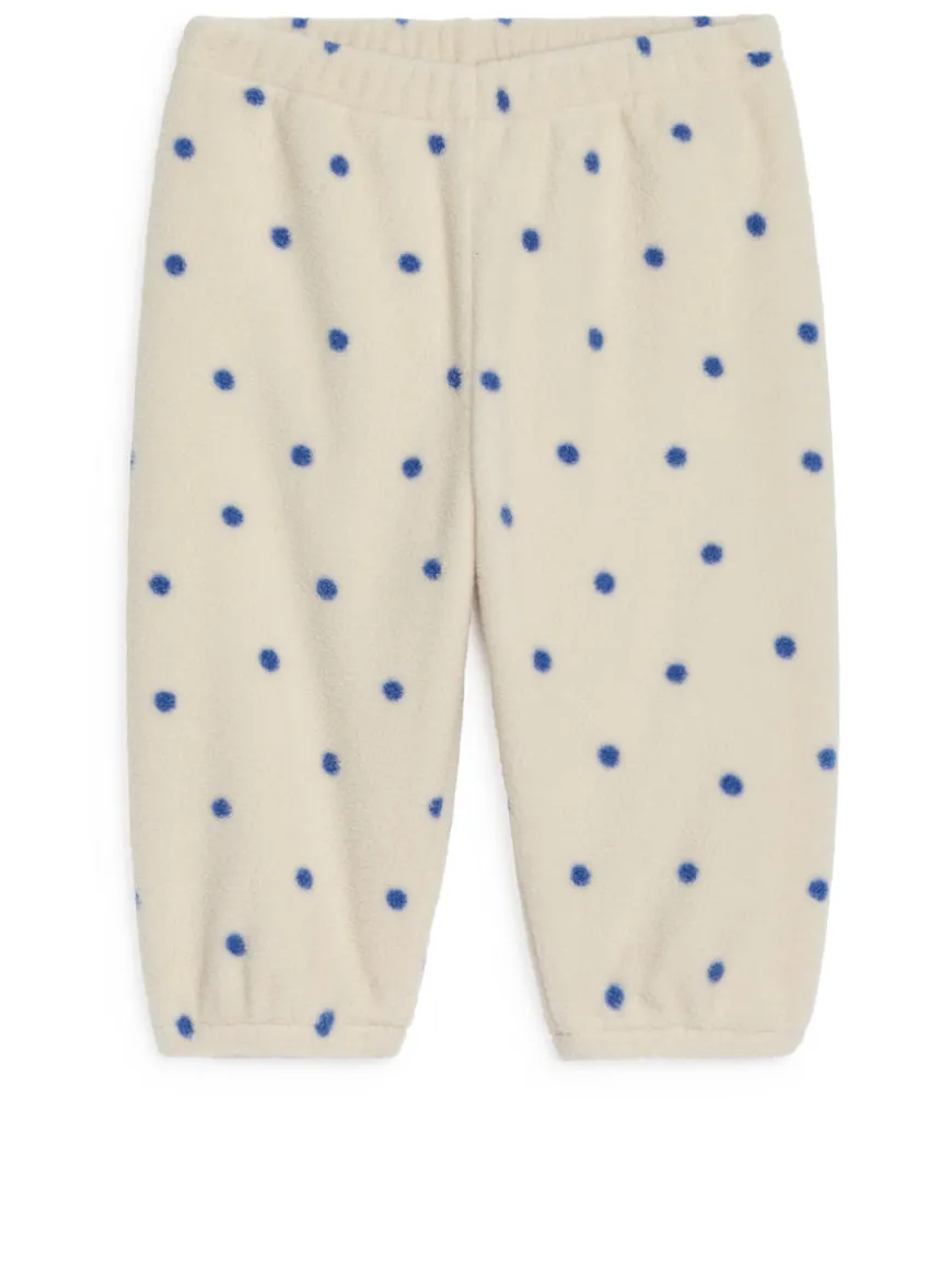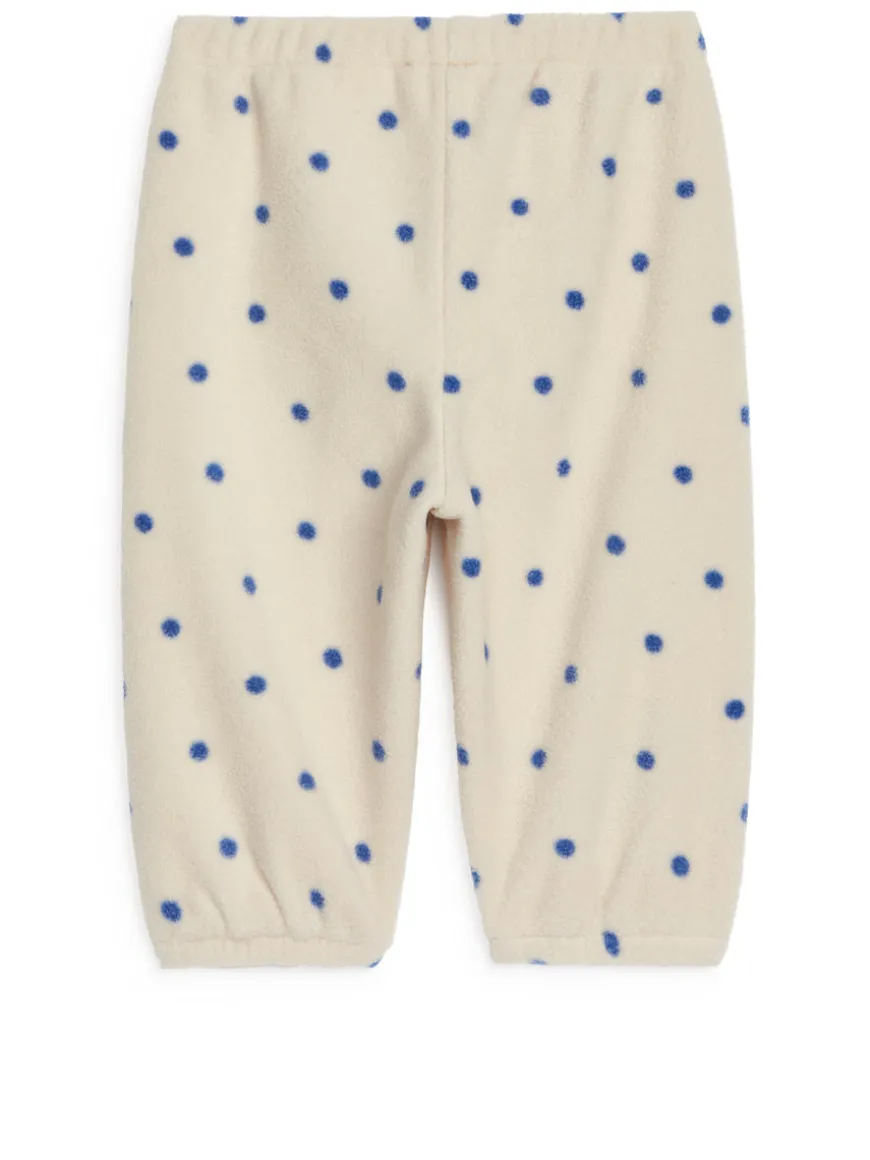 Fleece sweatpants made from a soft fleece fabric. Detailed with an adjustable elastic waistband and elastics at end of legs.