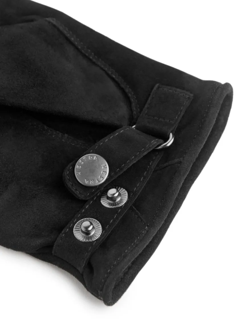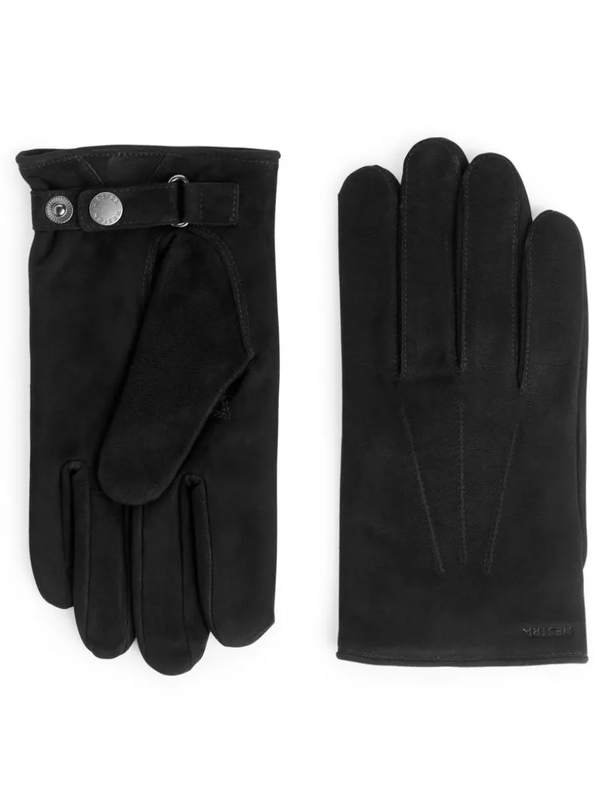 Gloves crafted from hairsheep suede from Swedish brand Hestra, one of the leading glove manufacturers in the world. Detailed with an adjustable leather strap at the wrist. The lining is made from soft wool for good insulation.