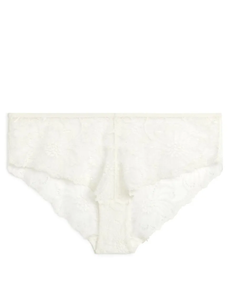 Crafted from an intricate floral lace, these regular waist hipsters offer a semi sheer coverage.