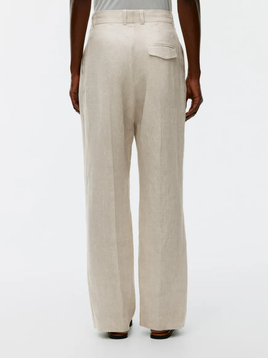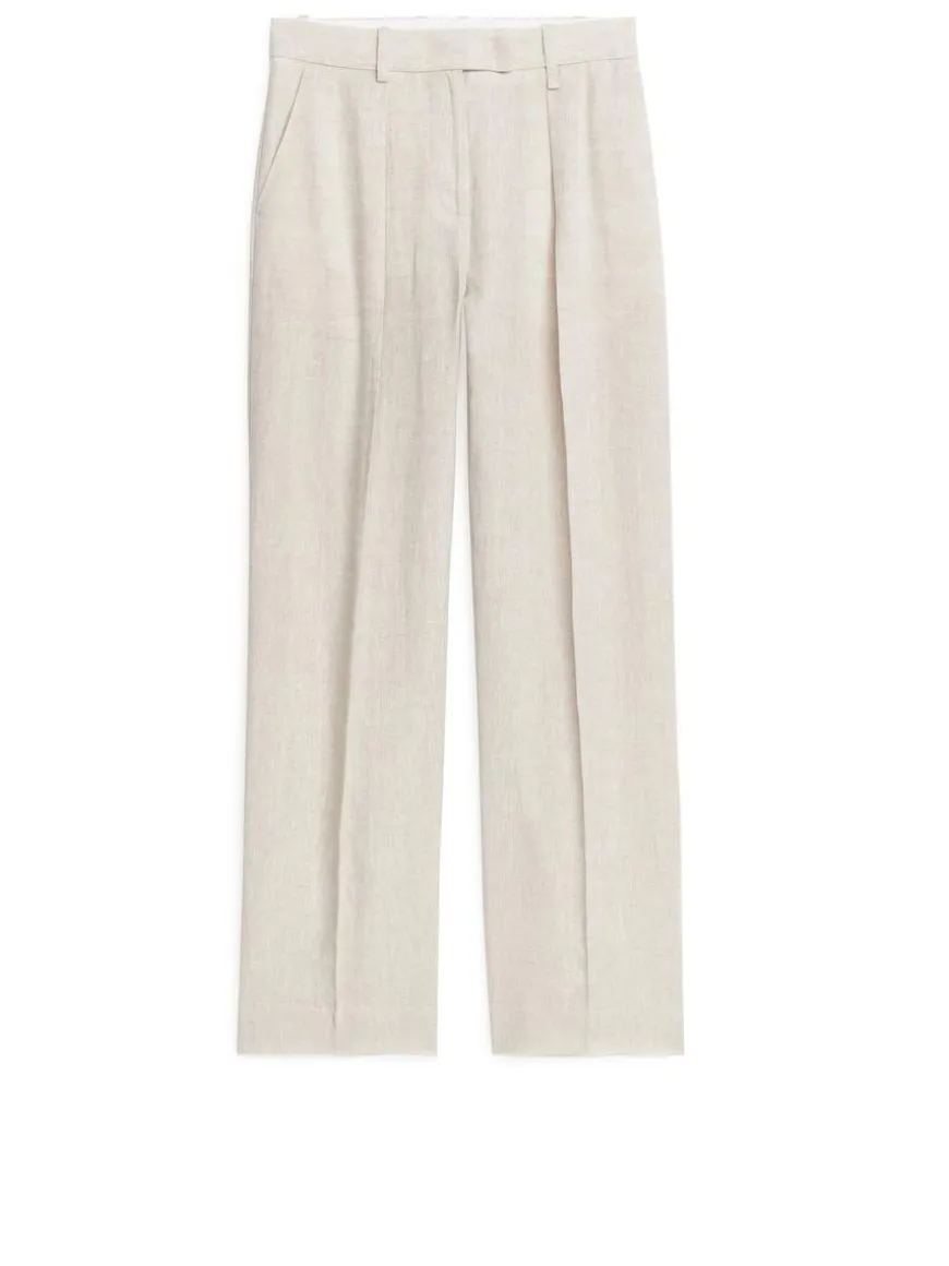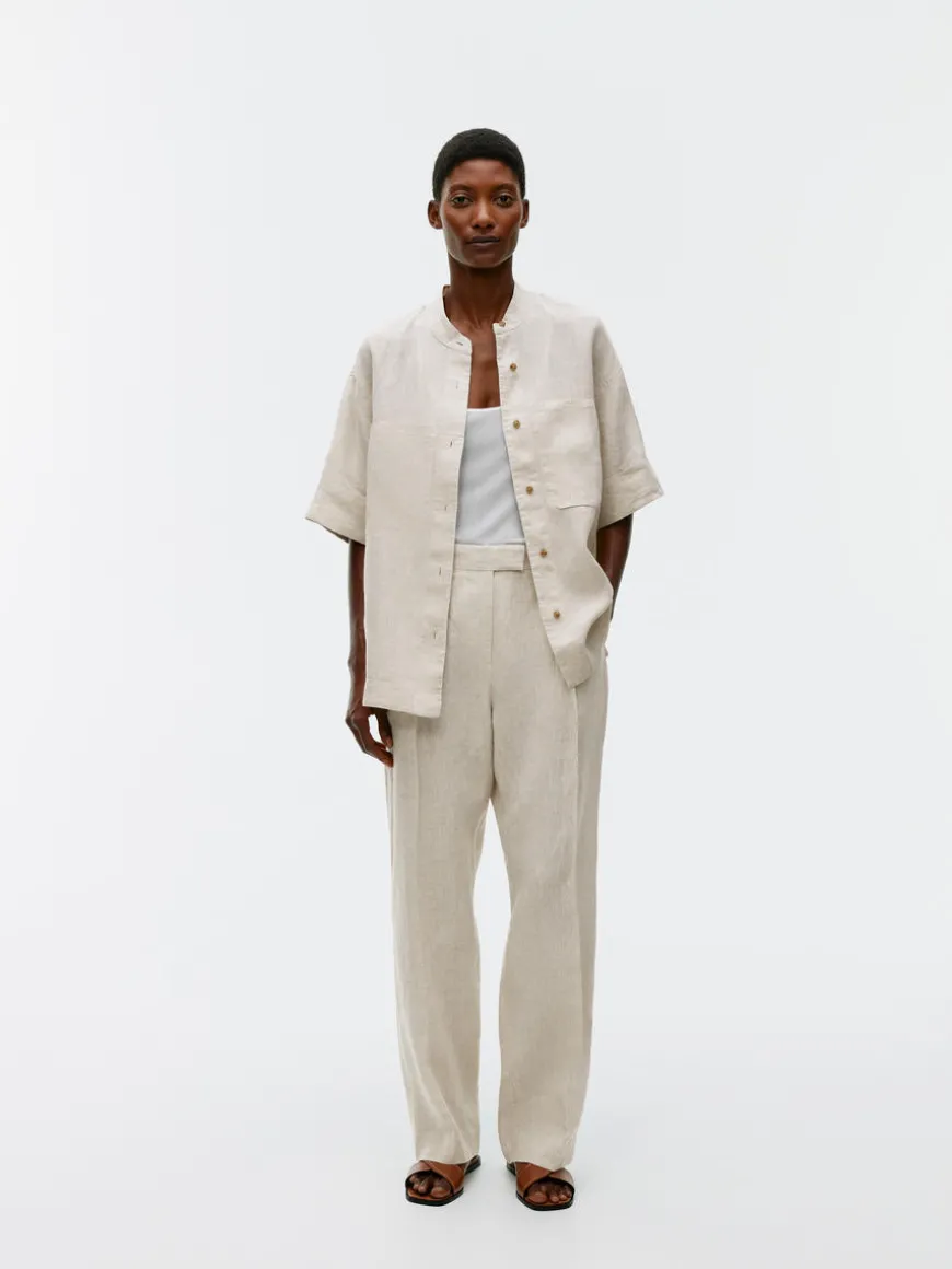 These full-length, mid-waist trousers are woven from pure linen. A straight fit with press creases and pleats at the front, giving the style a graceful drape.