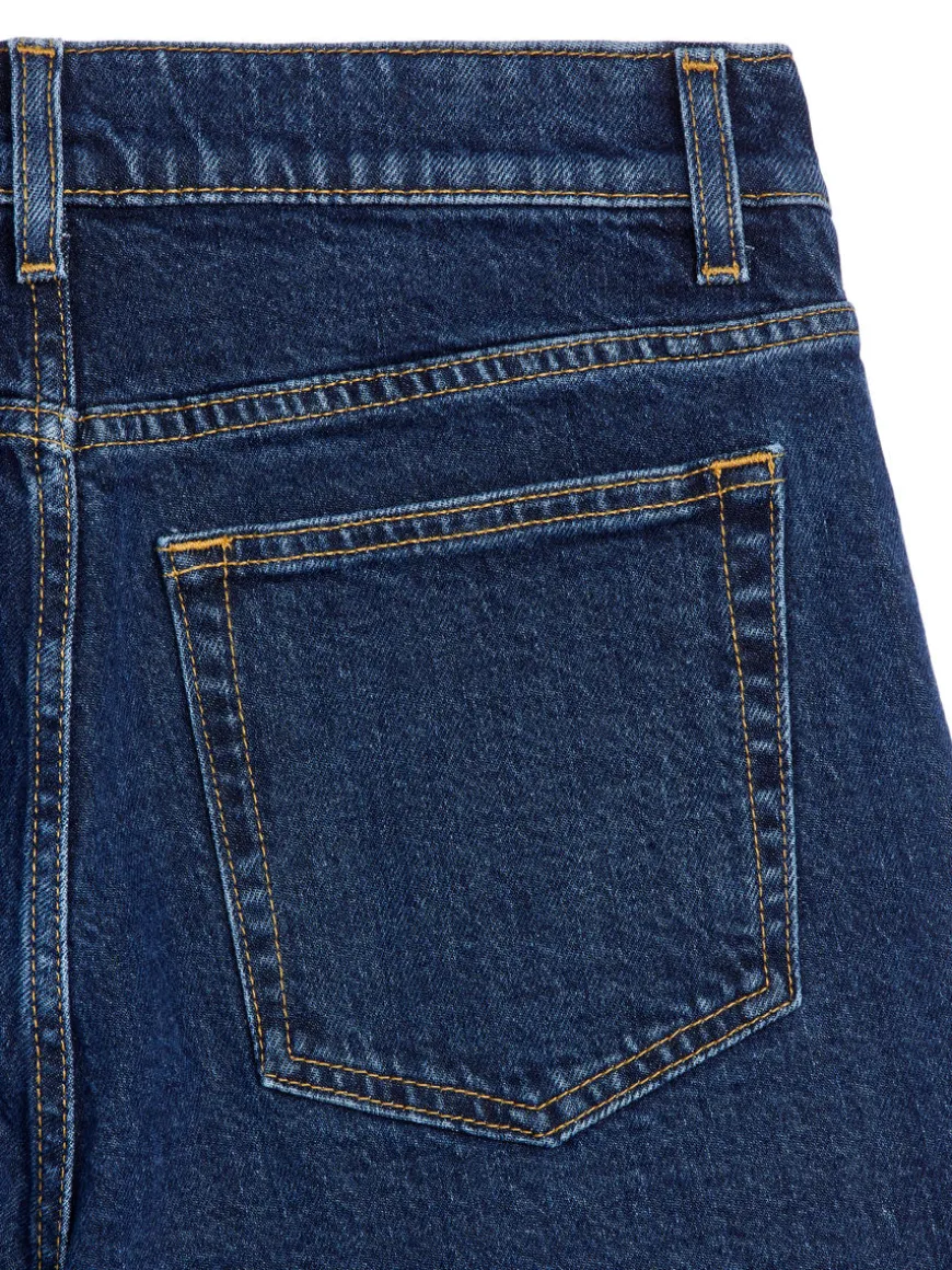 LUPINE is cut in a stretch denim and features a high rise waist, slim fit and flared legs. Zip fly.