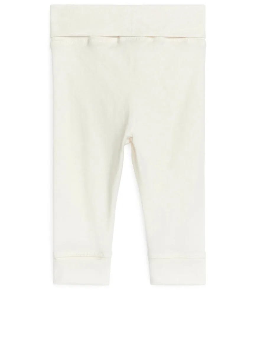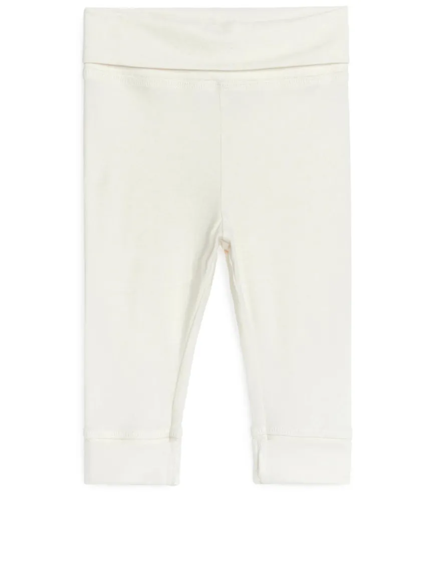 Leggings for the newborn baby. Crafted from an ultra soft, stretchy cotton jersey with a brushed surface for a peach-like feel. Waistband and cuffs are folded for the possibility to adjust length and fit.