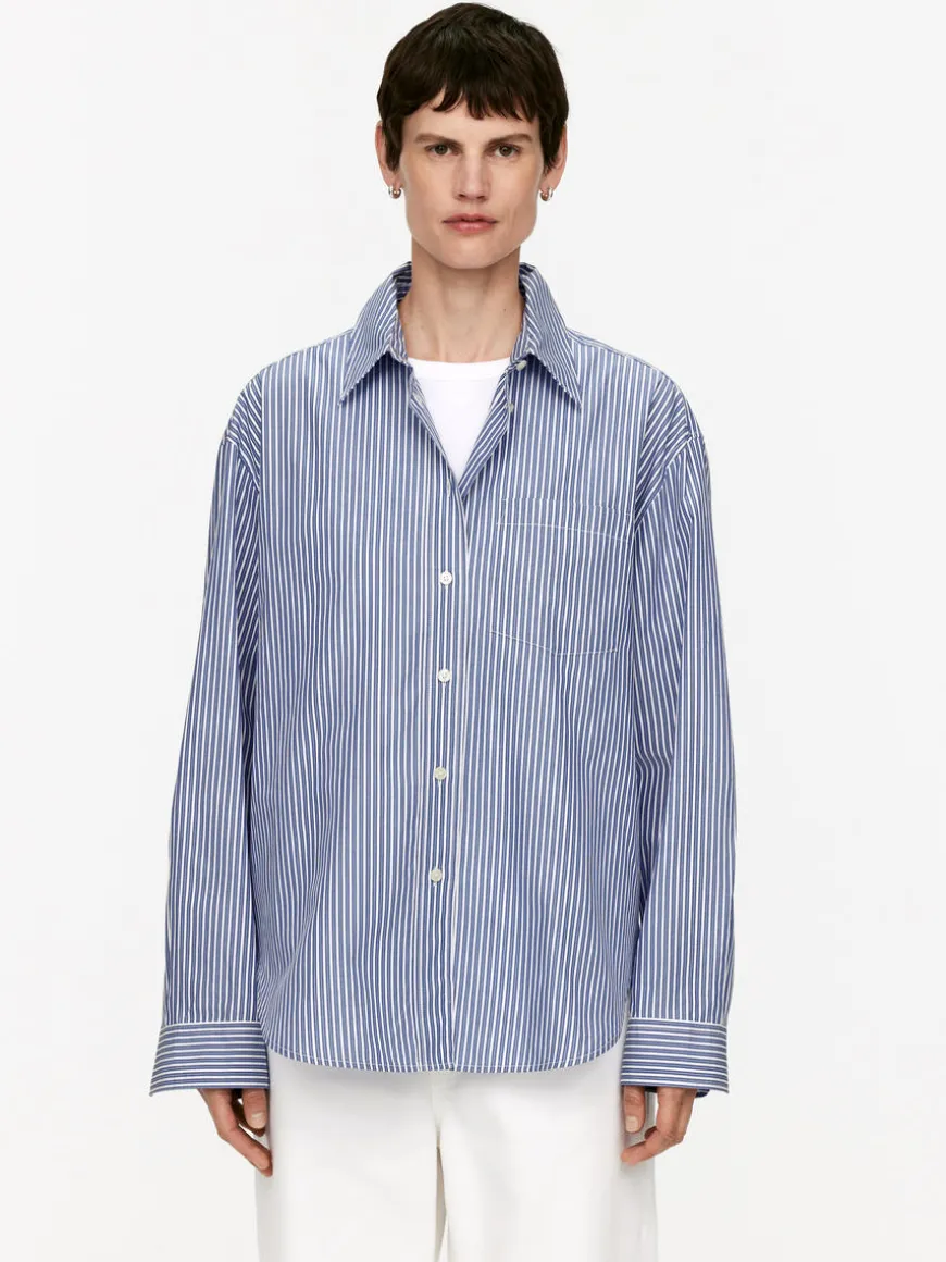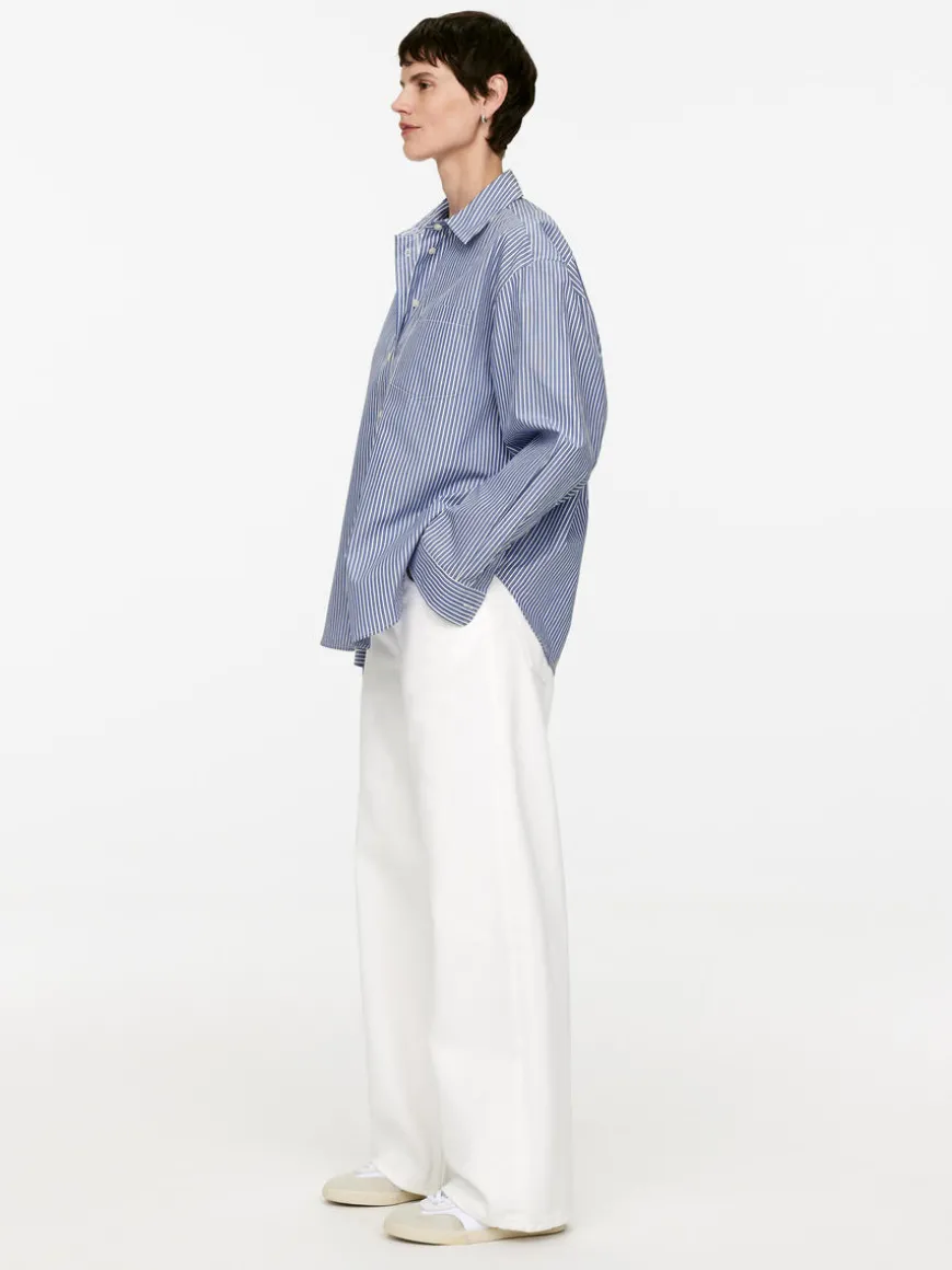 Oversized shirt crafted from cotton. A button-up style with a single chest pocket.
