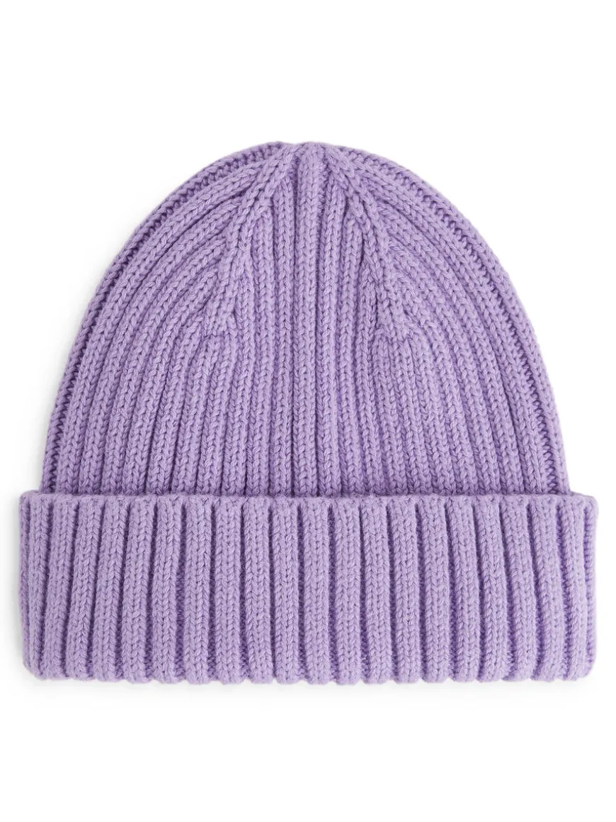 Soft and chunky cotton beanie knitted in a 2×2 rib, Folded brim. One size.