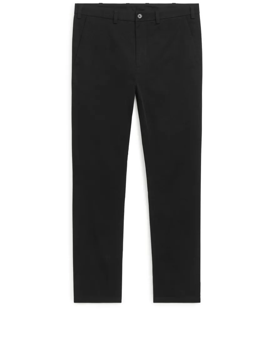 Everyday chino trousers in medium-weight cotton twill with a clean appearance. A slim-fit style with slanted pockets and buttoned welt pockets at the back. Waistband with belt loops. Zip fly.