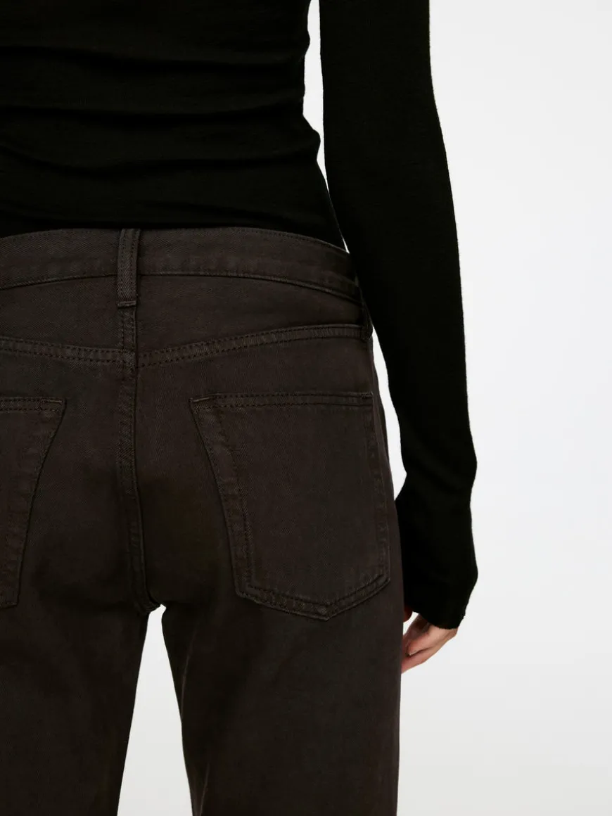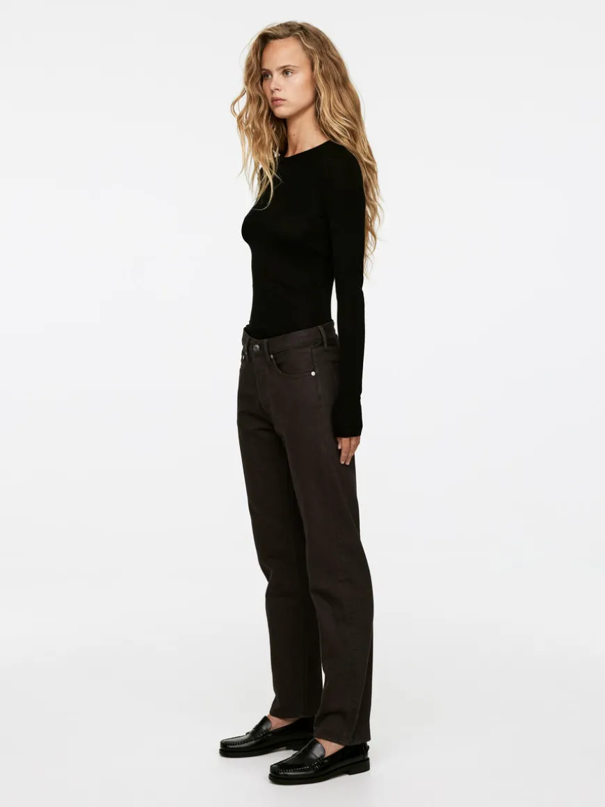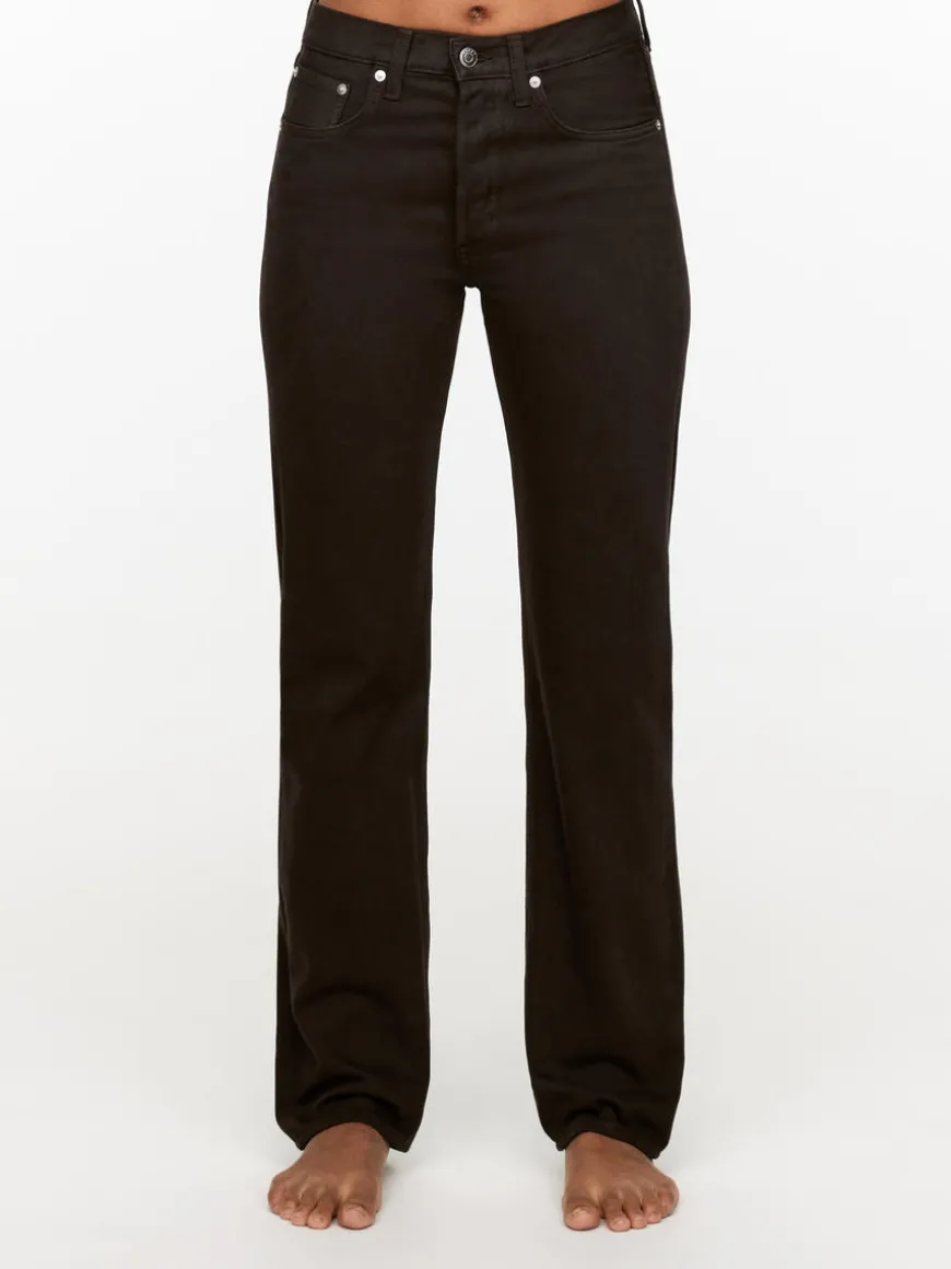 SNOW is cut from non-stretch denim and features a mid-rise waist, a slim fit and straight legs. Button fly.