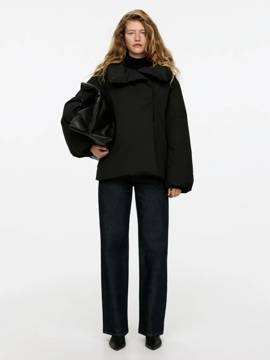 Clean puffer jacket filled with a warming blend of down and feathers. Styled with hidden press buttons in dyed-to-match colour, a standing collar with button closure and hidden pockets at side seams.