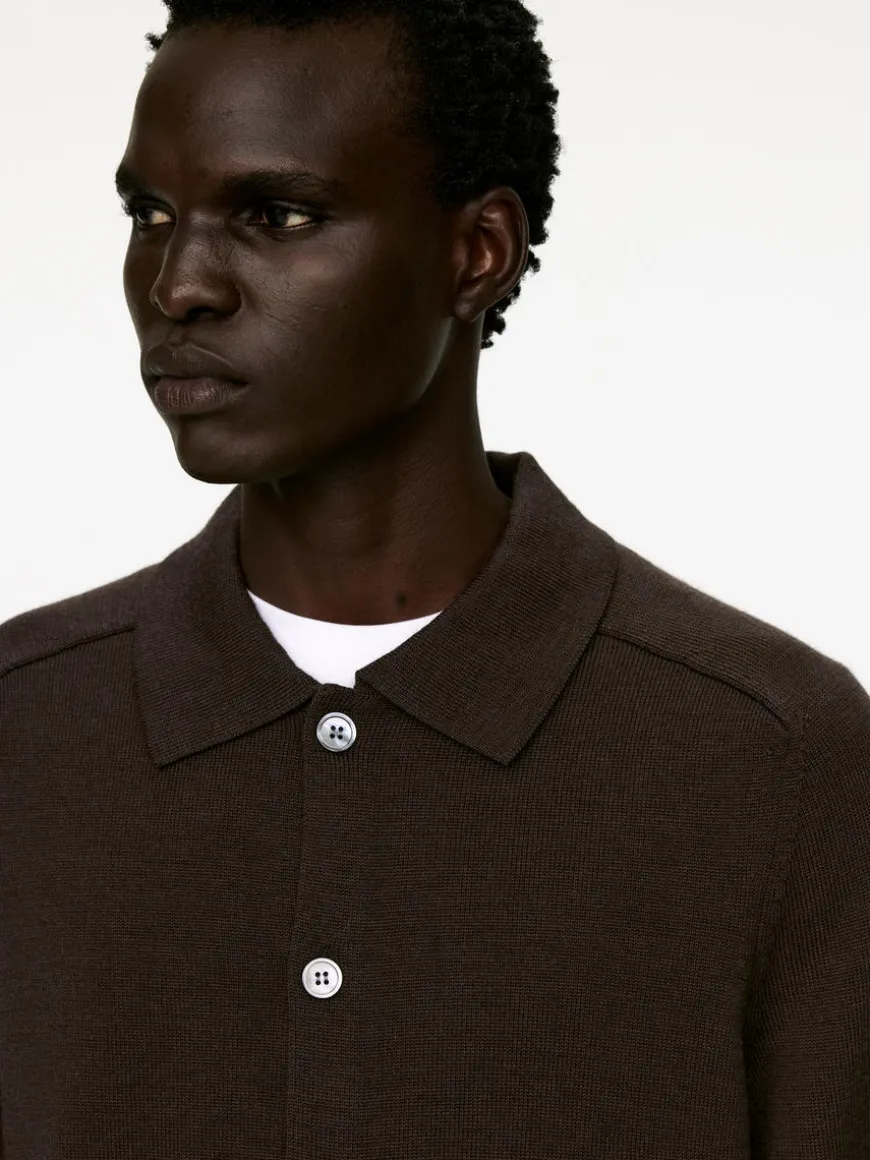 Dressed cardigan knitted in wool. Saddle sleeves. This cardigan contains 100% RWS wool, certified by control union 810300. Products certified to the Responsible Wool Standard (RWS) contain wool fiber from farms independently certified to animal welfare and land management requirements.