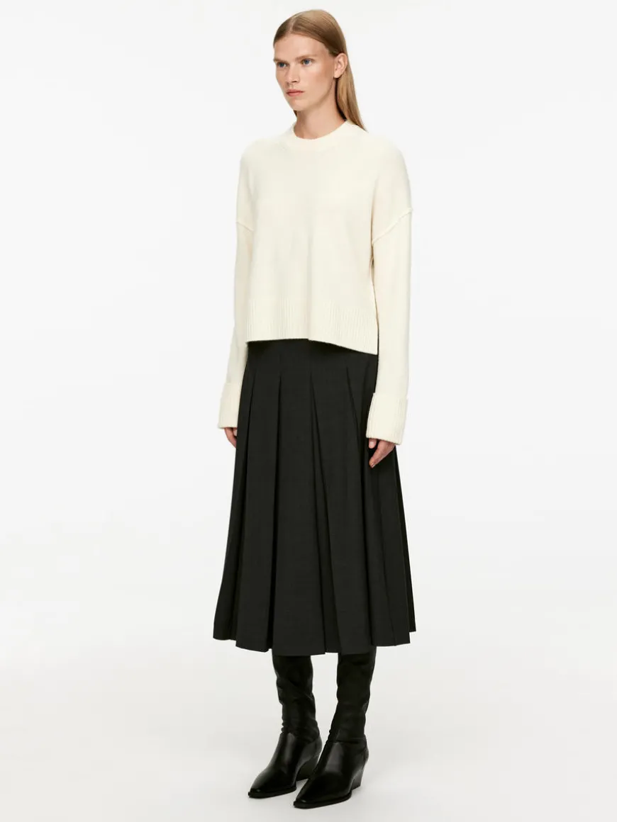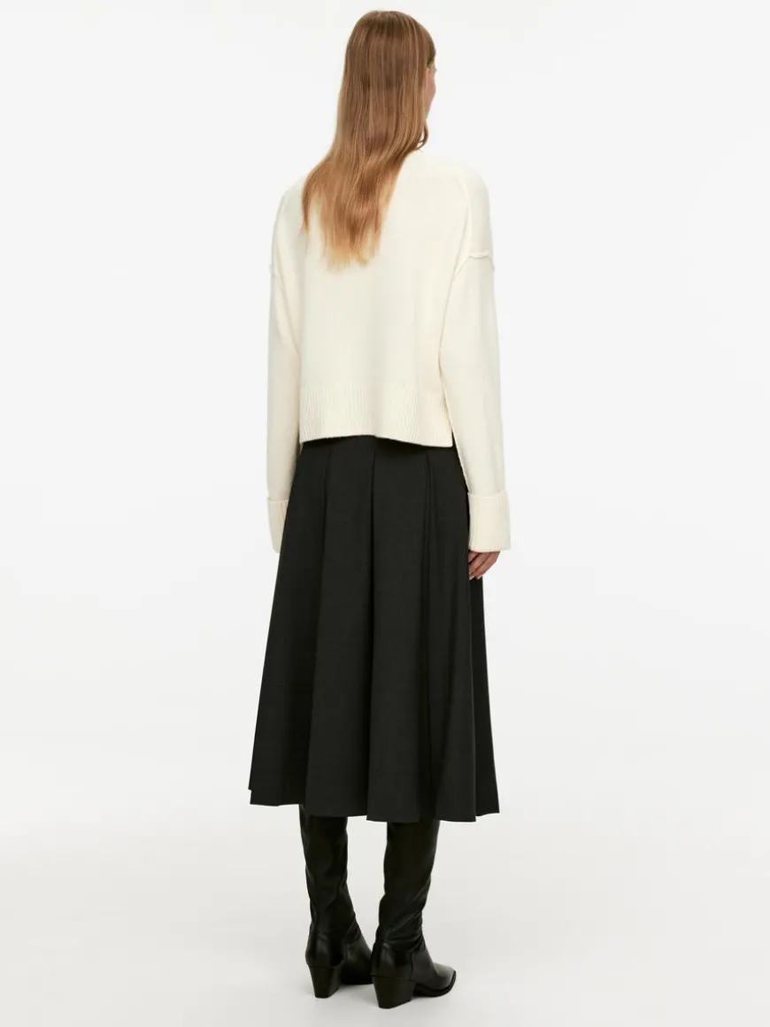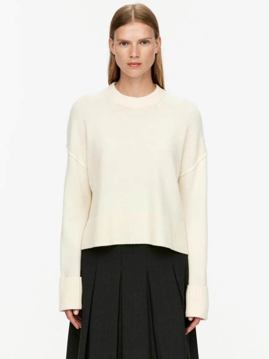 Wool jumper with ribbed, fold-up cuffs and slits at side seams. Knitted in a plain jersey stitch from wool. Regular fit. This style contains 100% RWS wool, certified by control union 815571. Products certified the the Responsible Wool Standard (RWS) contain wool fiber from farms independently certified to animal welfare and land management requirements.