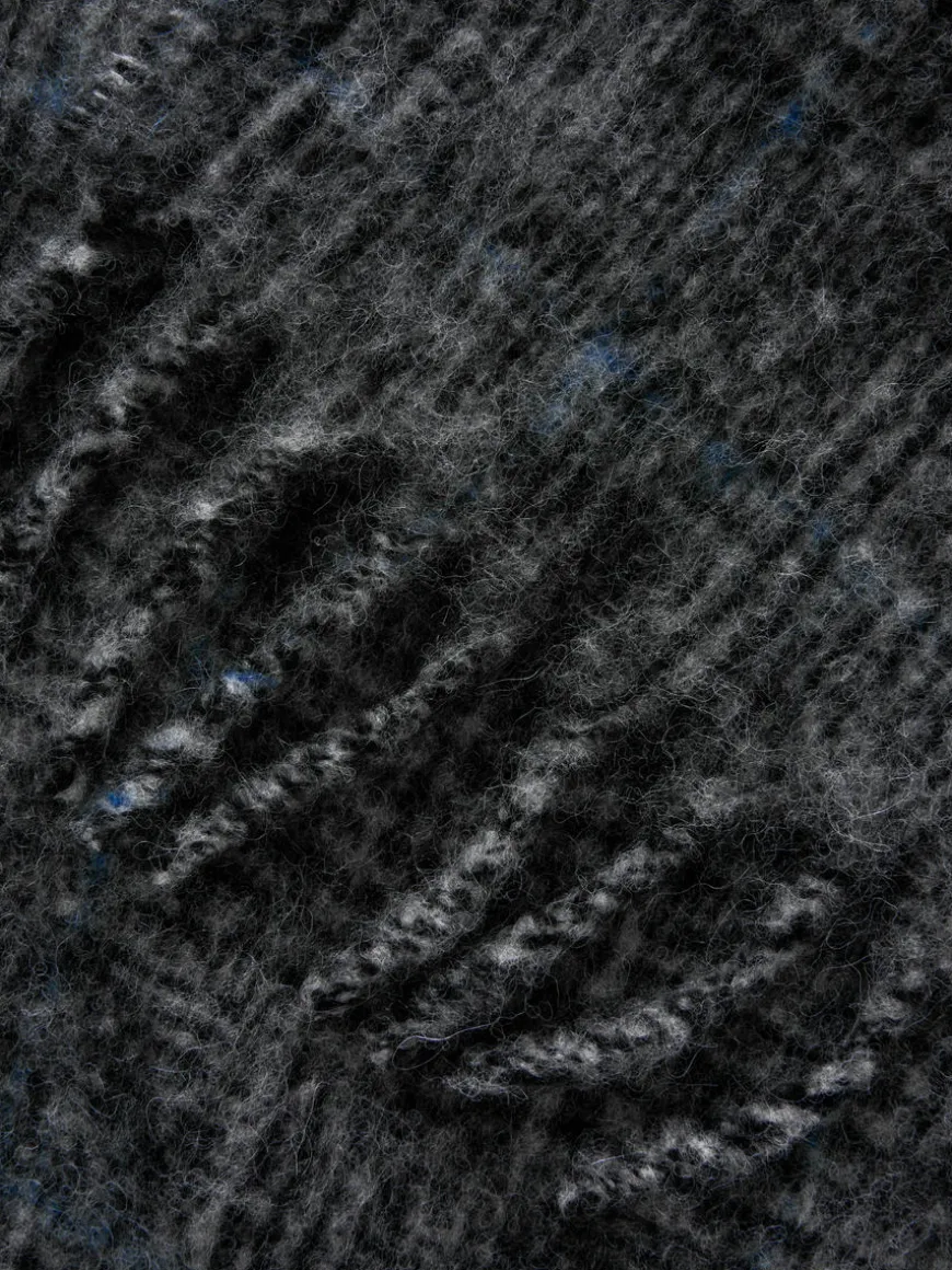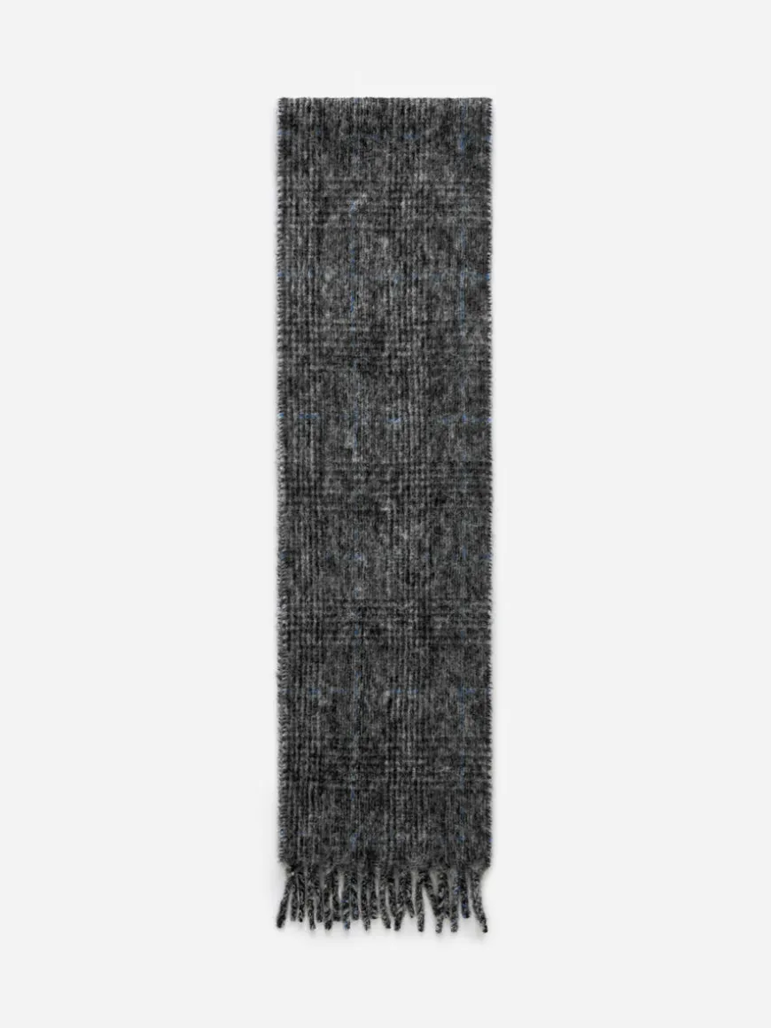 Scarf crafted from a premium alpaca blend with a hairy texture. Length 200 cm, width 30 cm.