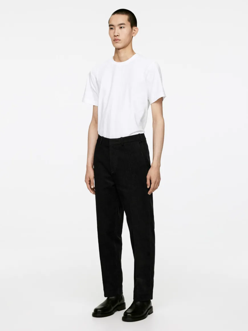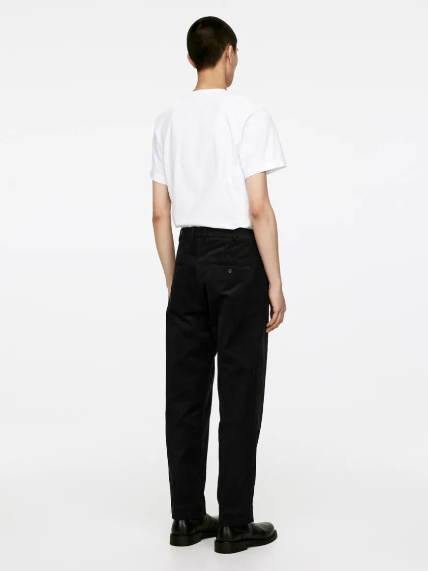 Corduroy trousers made of a cotton blend. Cut for a regular fit and styled with press creases and slanted pockets. Jetted pockets with buttoning at the back. Waistband with belt loops, hook-and-bar closure and zip fly. Matching blazer available.