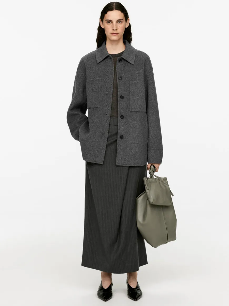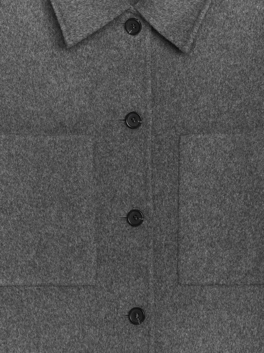 Shirt made from double cloth fabric made of wool and lyocell. Patch pockets at chest and slit at sides. Regular fit. The shell fabric contains 65% RWS wool (TE-00047206). Products certified to the Responsible Wool Standard (RWS) contain wool fiber from farms independently certified to animal welfare and land management requirements.