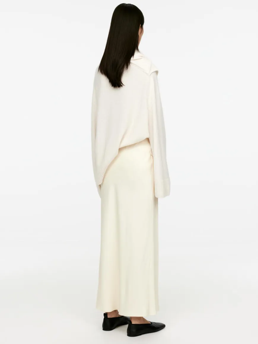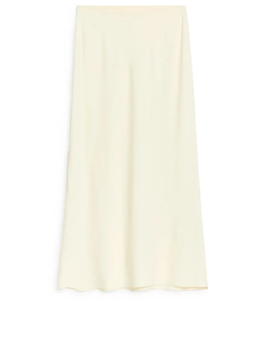 Full-length skirt with a straight fit crafted from a semi-shiny twill fabric with a beautiful drape. Elasticated waistband and narrow pin hem at bottom.