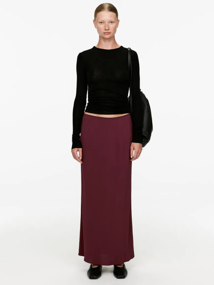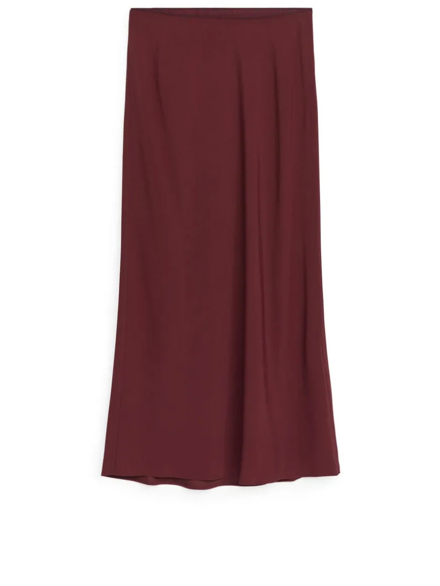 Full-length skirt with a straight fit crafted from a semi-shiny twill fabric with a beautiful drape. Elasticated waistband and narrow pin hem at bottom.