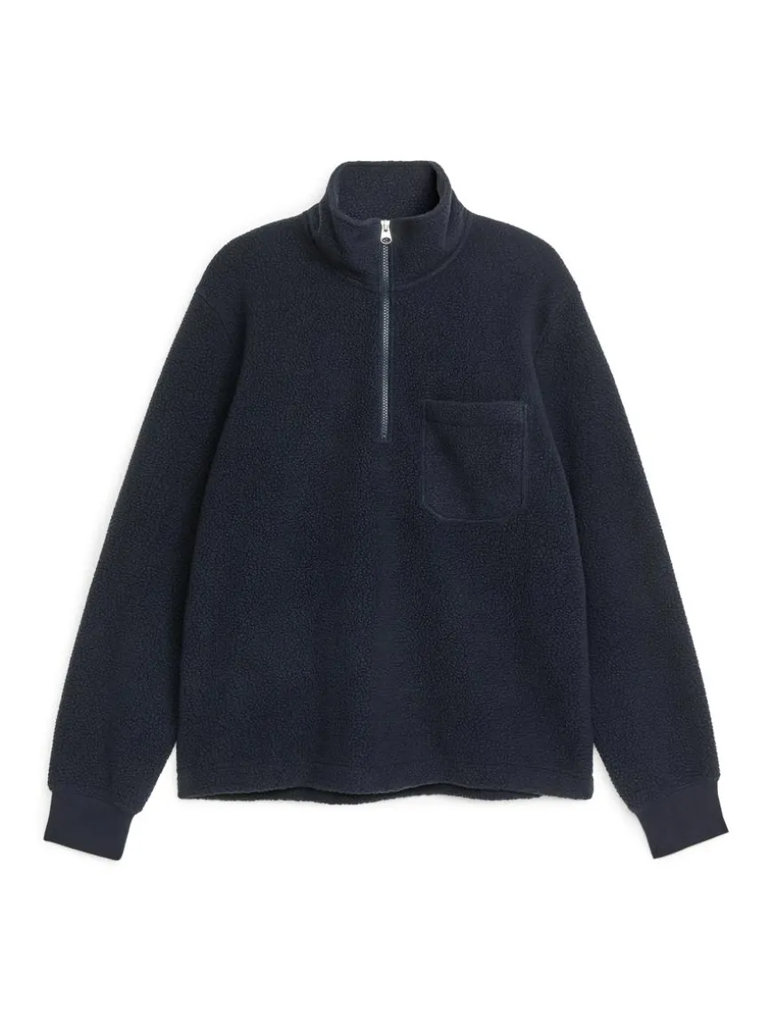 Half-zip sweatshirt sewn from ultra-soft fleece. Cut for a regular fit features a high neck, ribbed cuffs, and a single patch pocket at the chest.