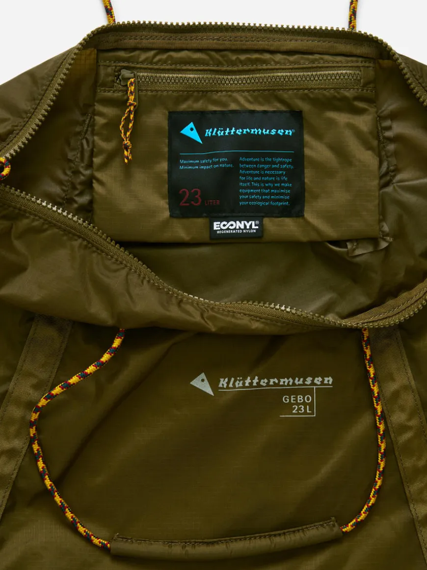 Lightweight, technical tote bag from Swedish mountaineering brand Klättermusen. Perfect for everyday use, it is detailed with two padded carrying handles that runs in a tunnel, so the bag can be compressed and worn over one shoulder. Made from a durable ripstop fabric of polyamide, with a fluorcarbon-free coating for water-repellent properties. The tote is packable, it can be tucked away in the small inside pocket. Large zip opening. Weight 127 g. Capacity 23 litres. Dimensions 46.5 x 44 x 16 cm.
