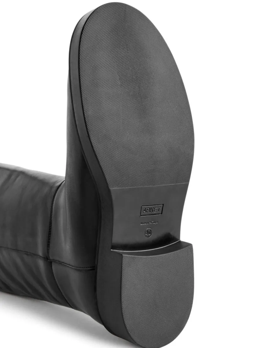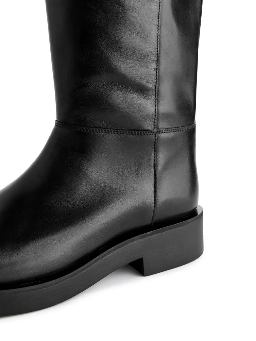 Boots designed with inspiration from classic riding boots with decorative seams on the side and around the wrist. Pull strap at the back make the boots easy to put on. Heel height 3.5 cm. Shaft height (size 39) 41.4 cm. Boot opening circumference (size 39) 39.2 cm.