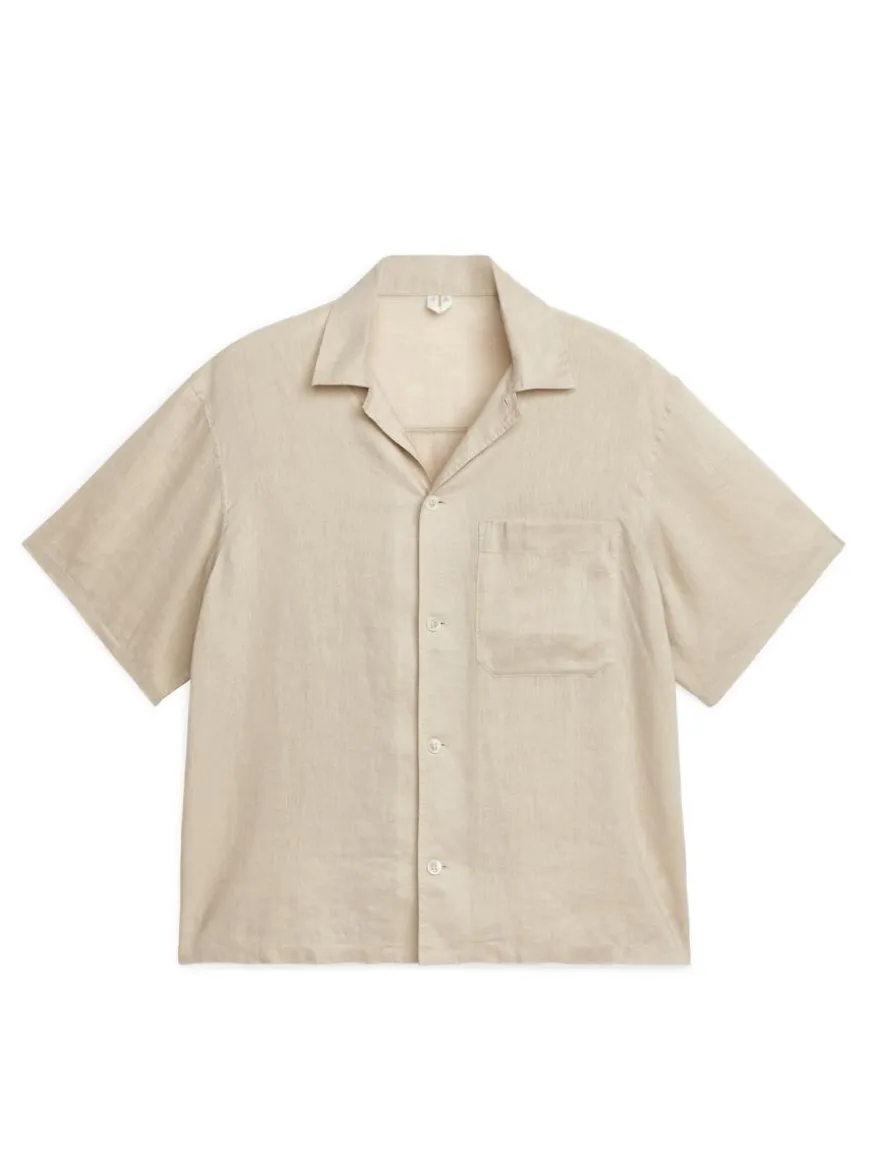 Cut for a comfortably loose fit, this short-sleeve shirt is crafted from a light-weight, breathable linen weave. Styled with a resort collar, front buttoning and a single chest pocket.