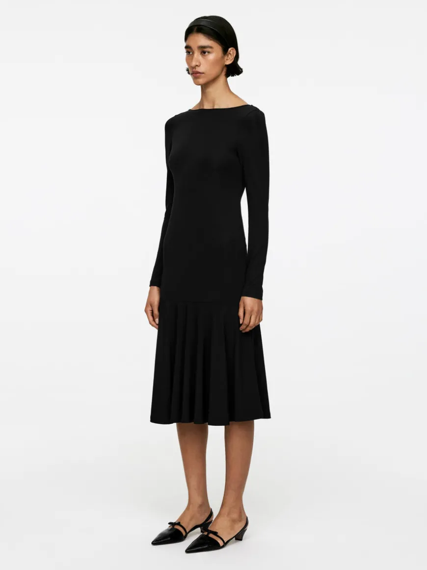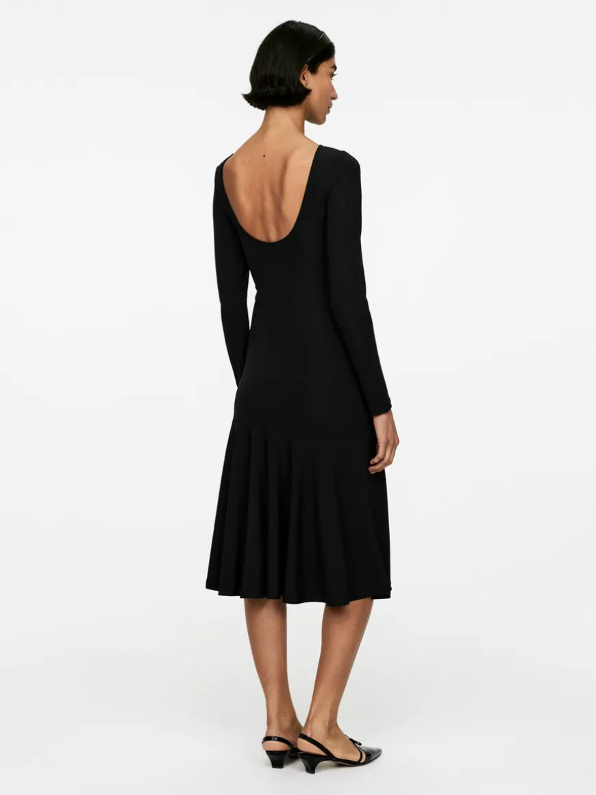 Midi dress made from a viscose jersey with added stretch. A long-sleeved style with a flared skirt section.