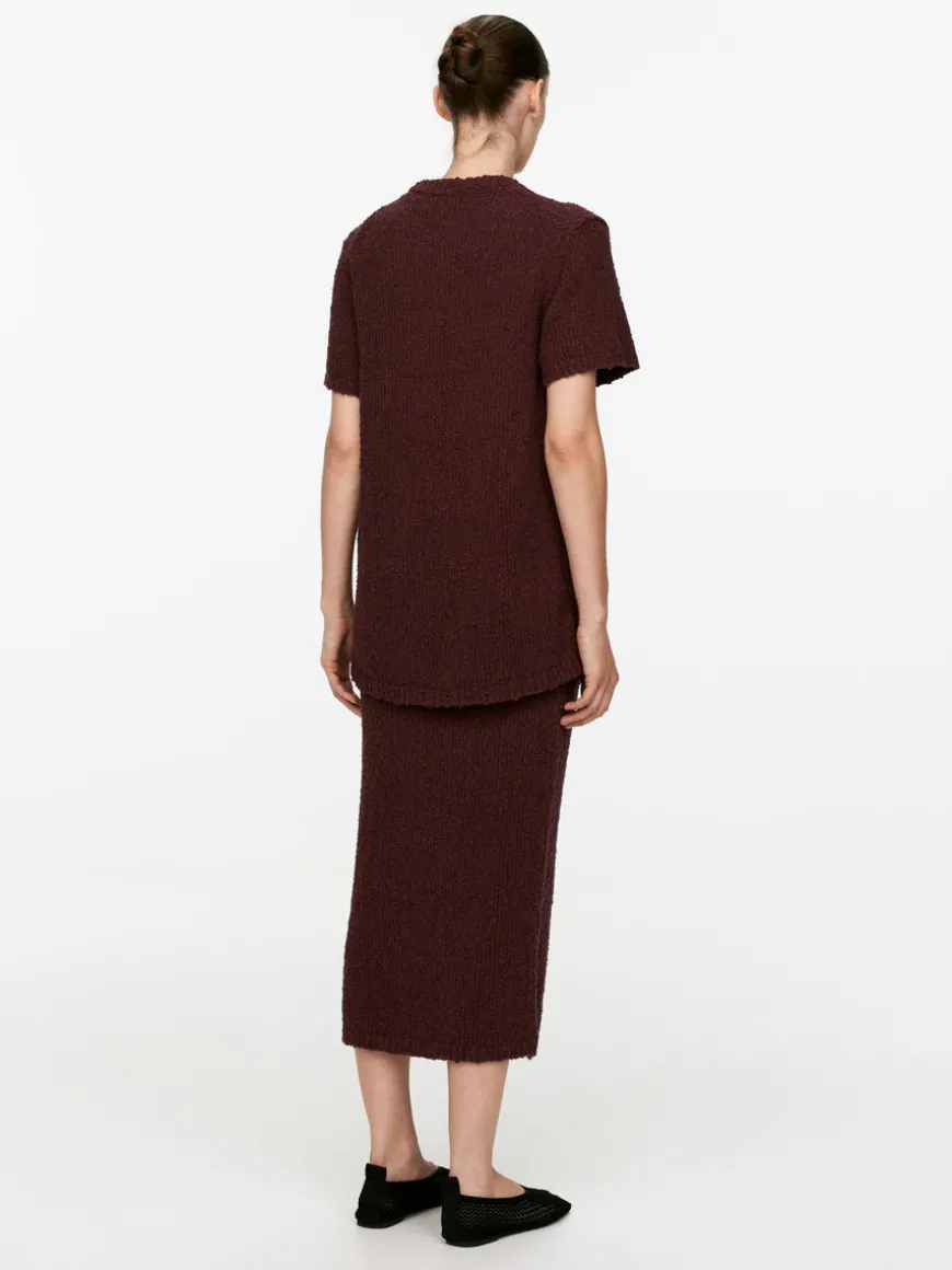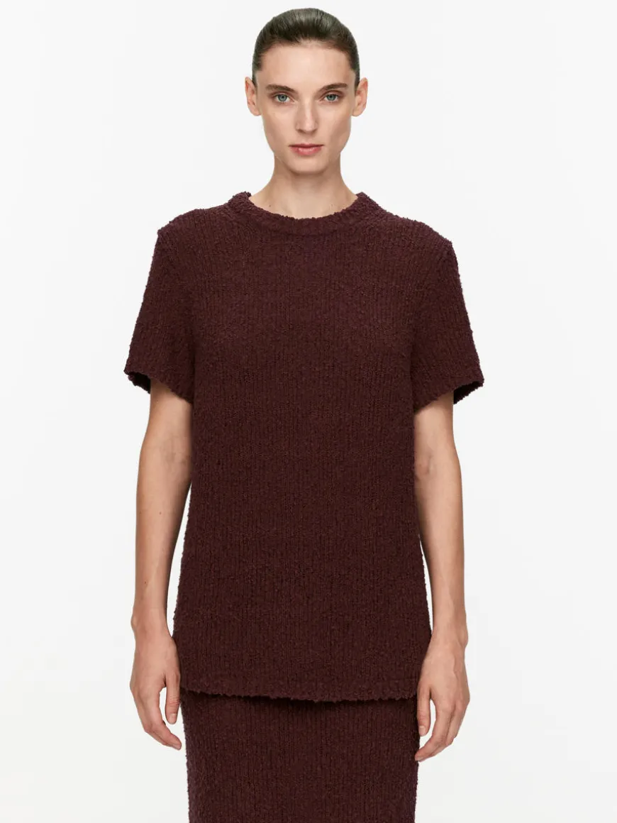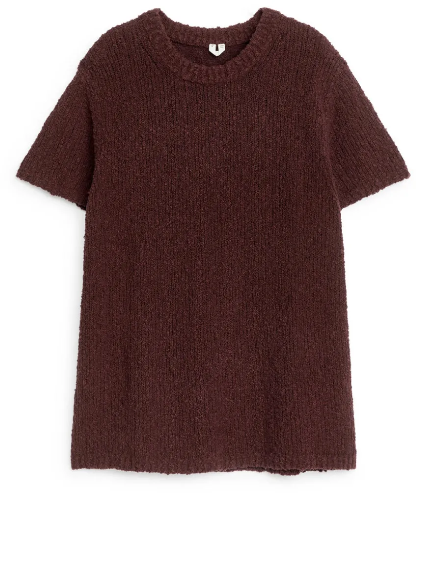 Open-knit T-shirt crafted from a cotton blend. Styled with ribbed trims. Slim/regular fit.