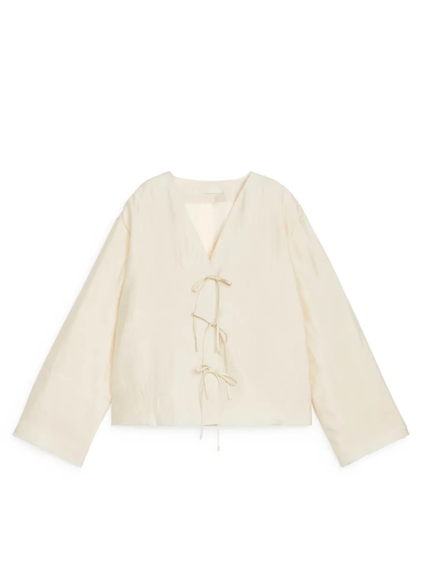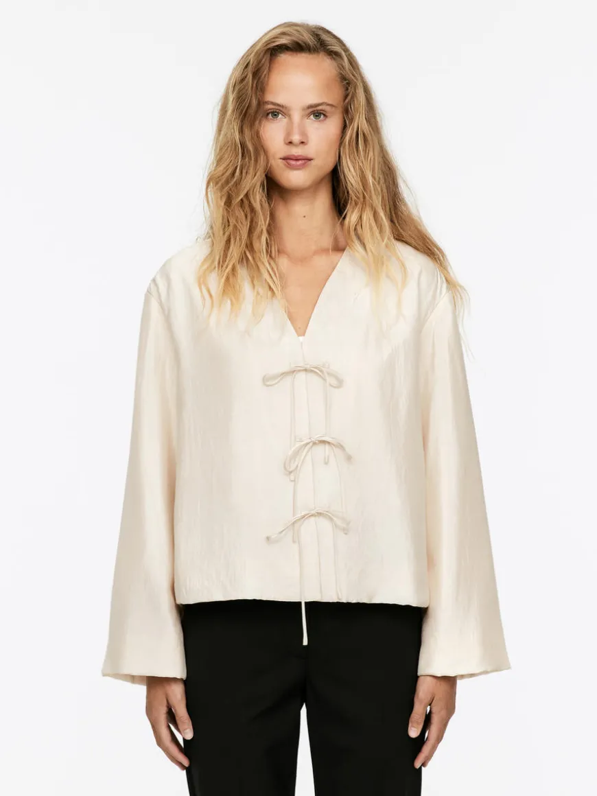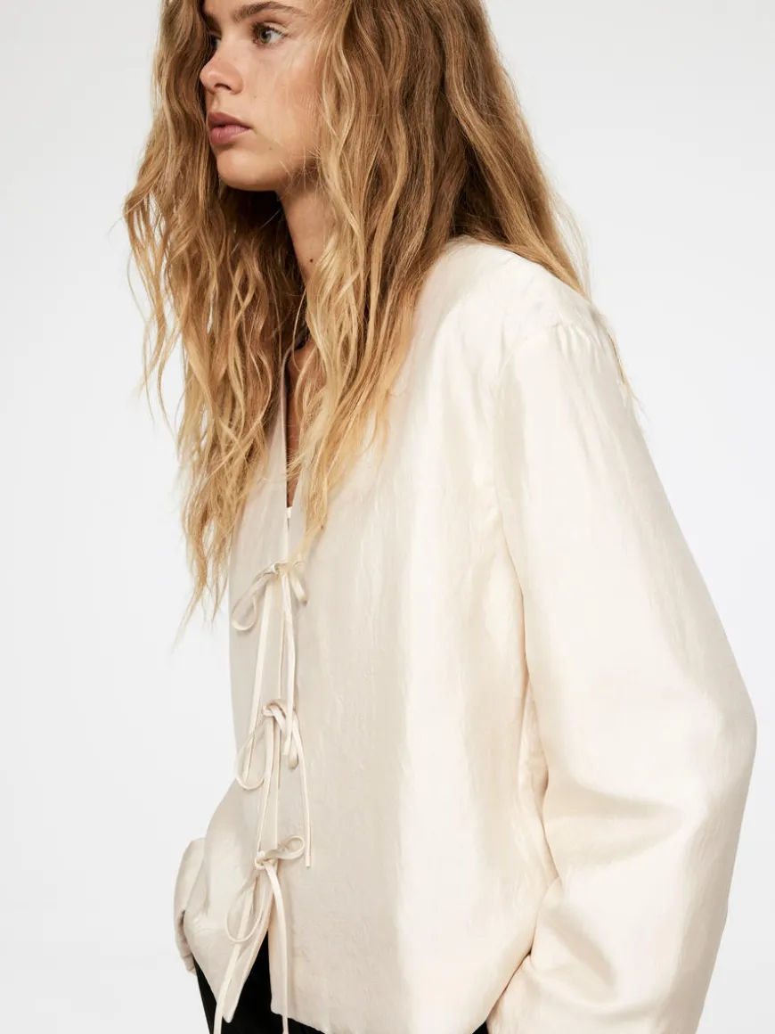 Padded long-sleeved top with tie straps at front. Regular fit.