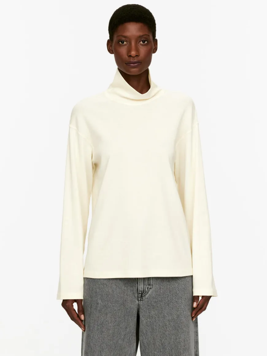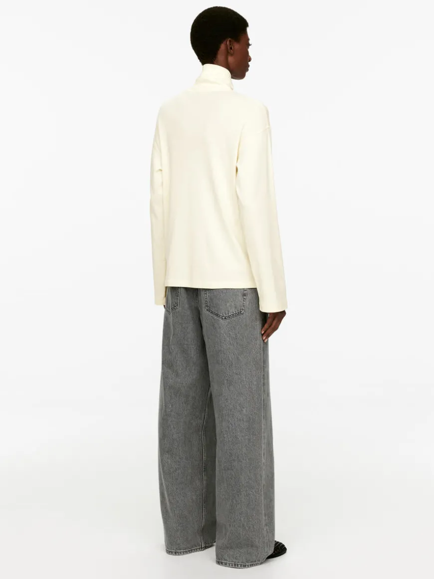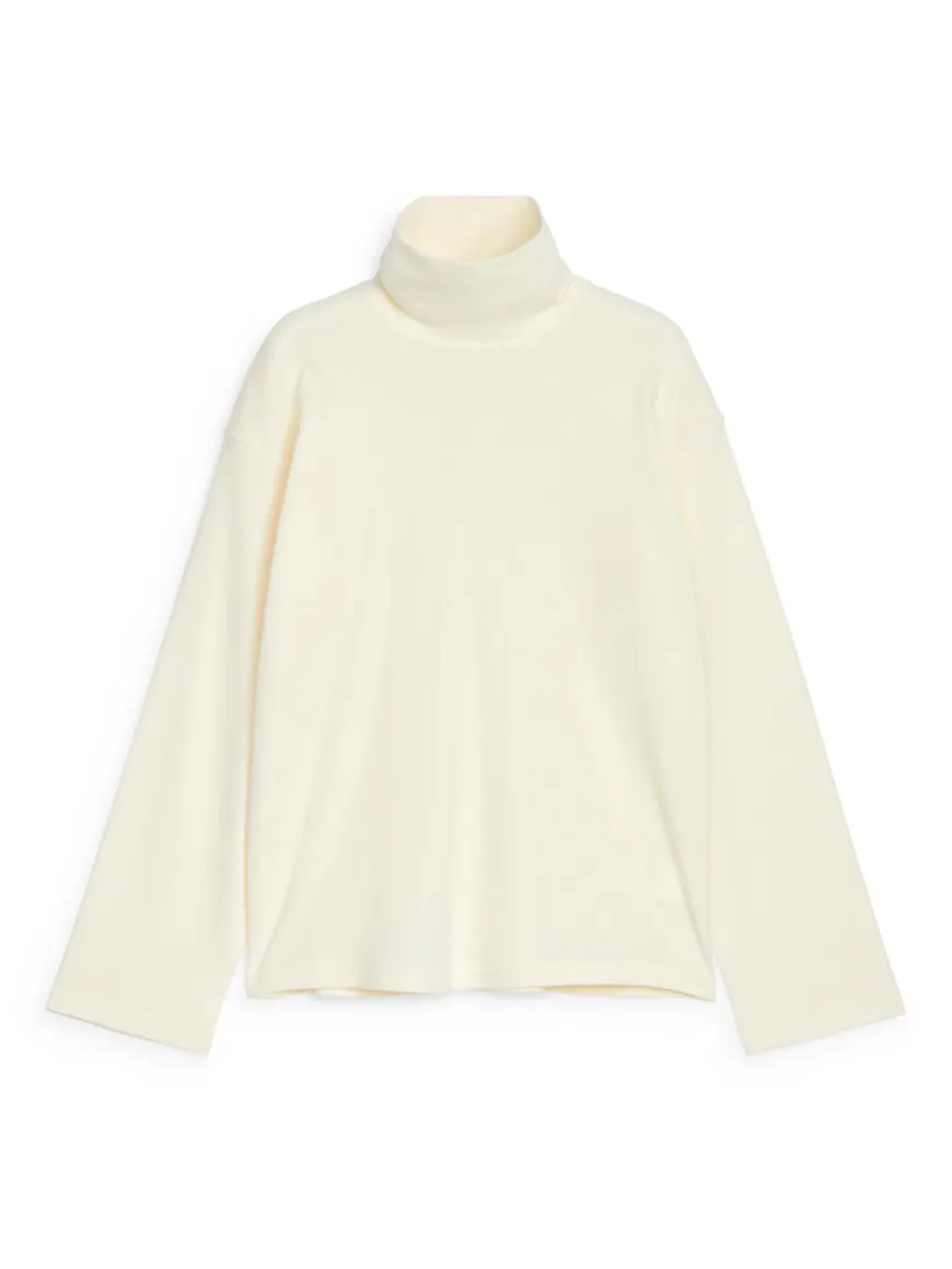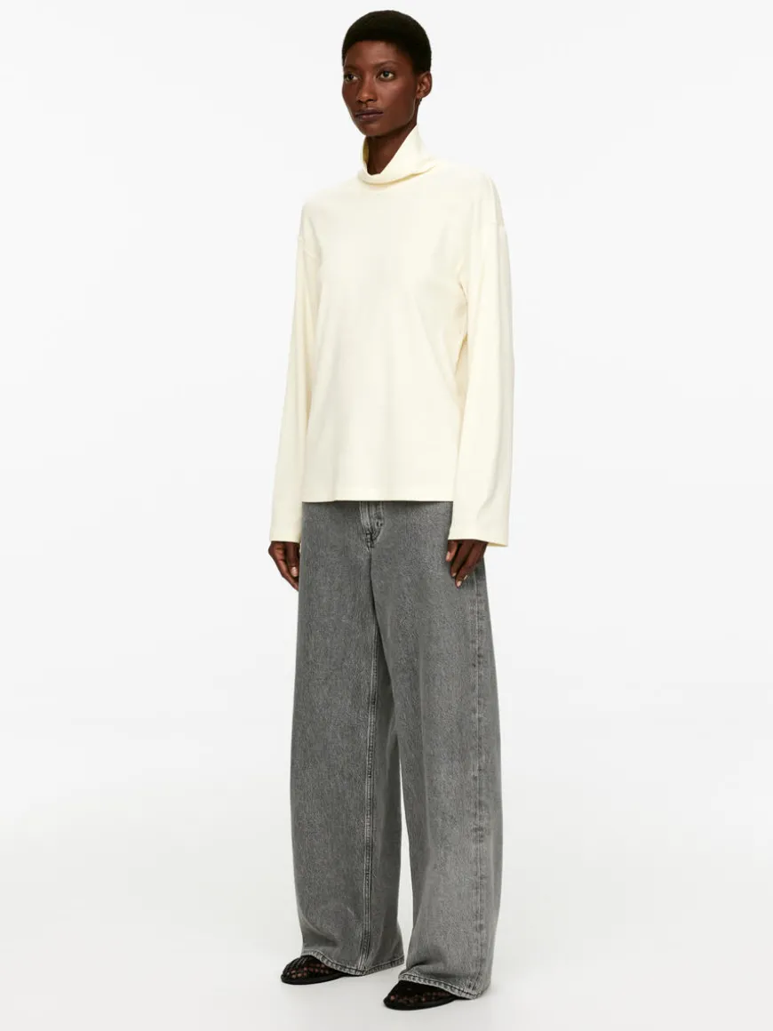 Roll-neck top in a crêpe jersey made of cotton. A slightly looser fit with dropped shoulders.
