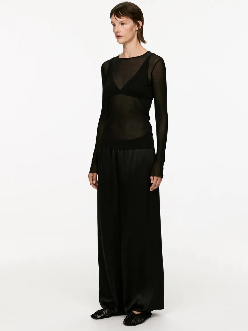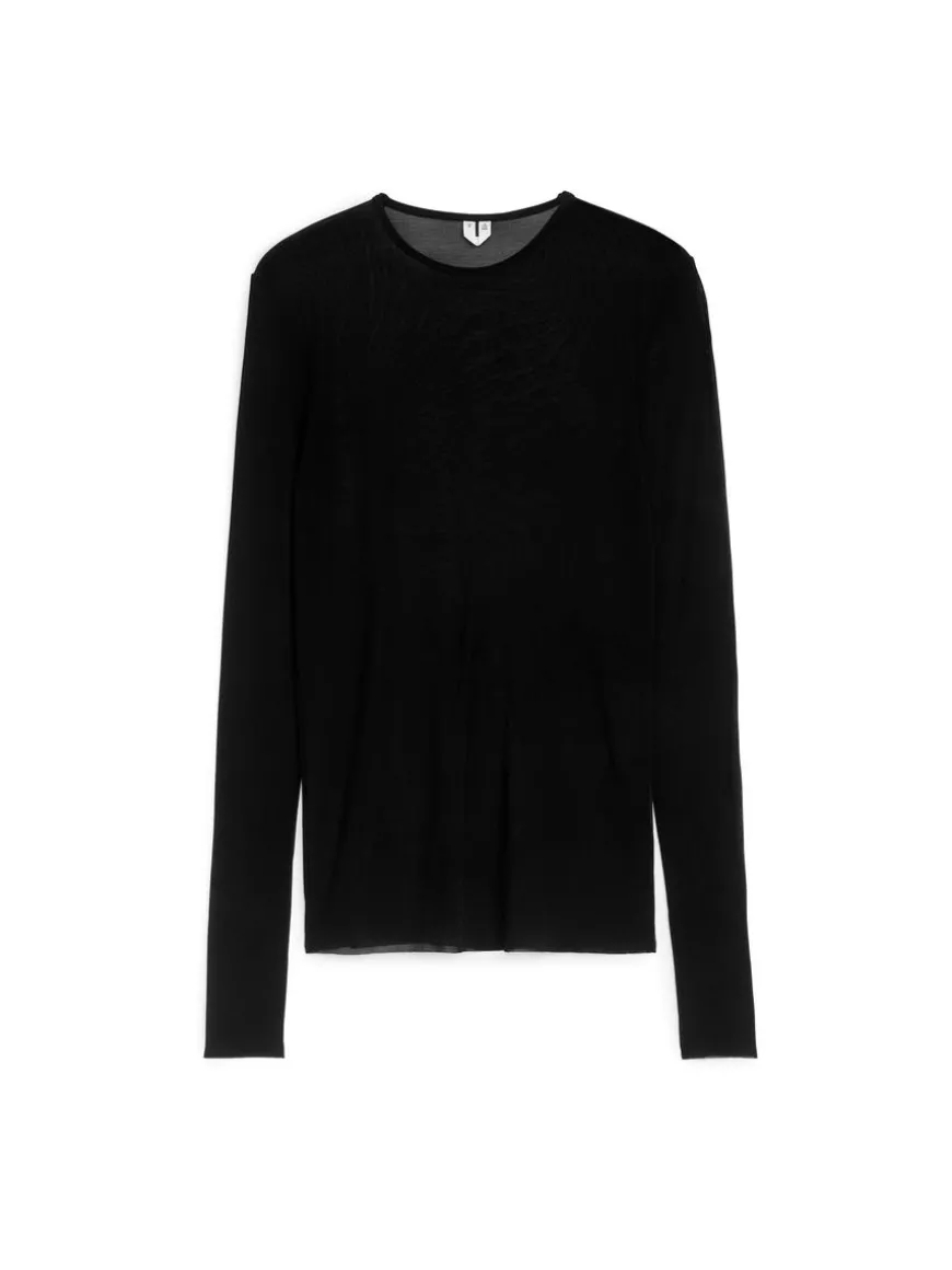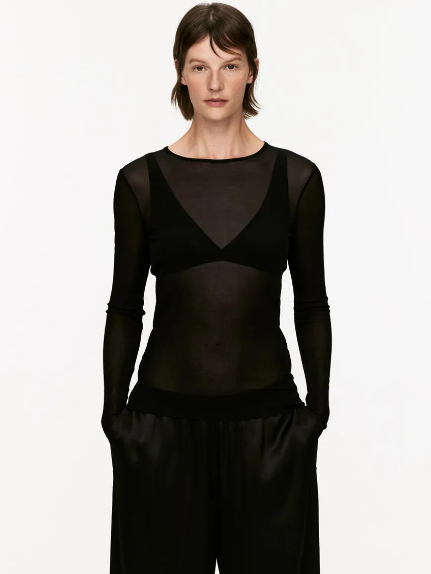 Long-sleeve top cut from a sheer rib jersey fabric made of silk. Cut for a slim fit and designed to be worn close to the skin as a layering piece.