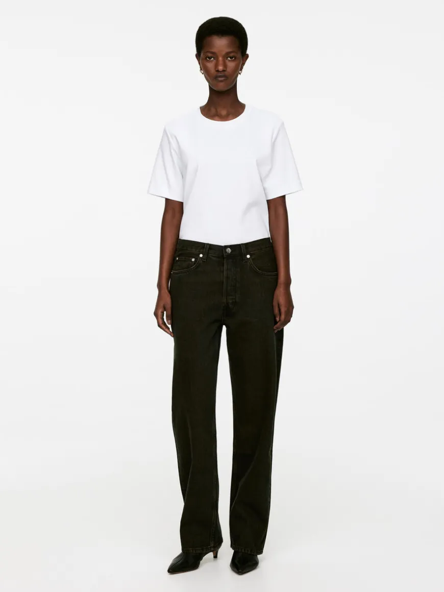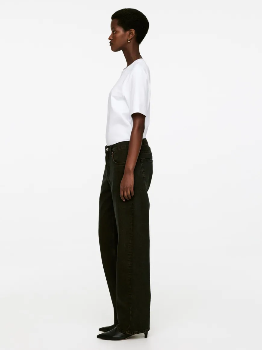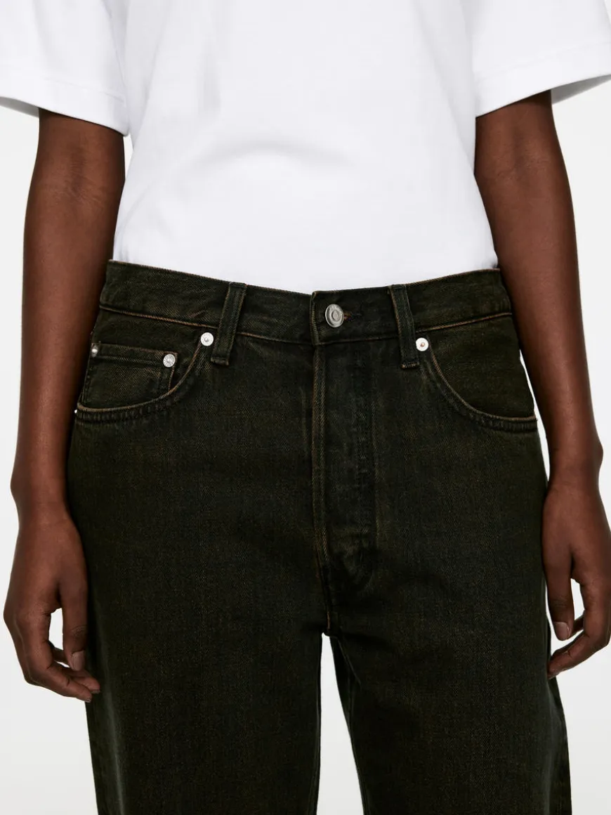SHORE is cut from non-stretch denim and features a low-rise waist, relaxed fit and straight, loose legs. Button fly.