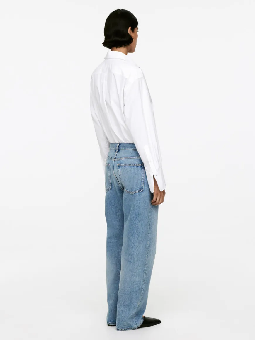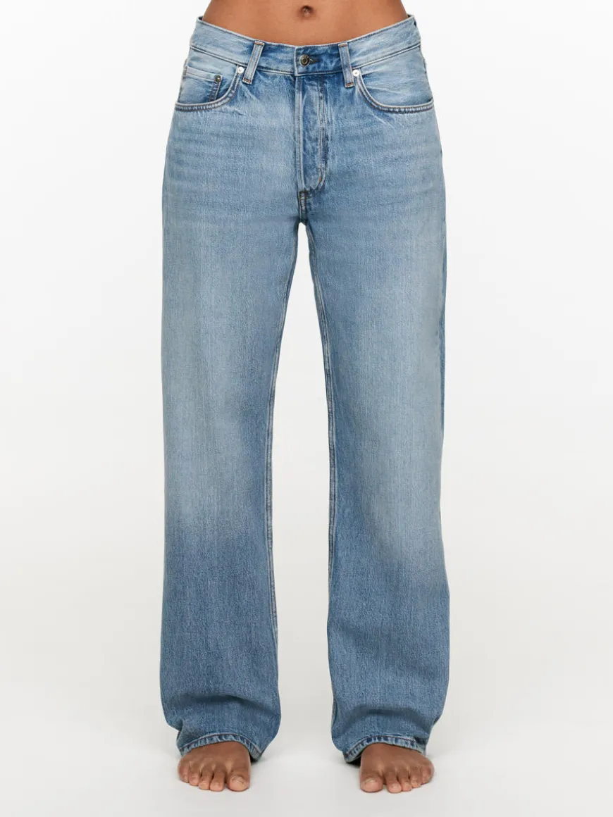 SHORE is cut from non-stretch denim and features a low-rise waist, relaxed fit and straight, loose legs. Button fly.