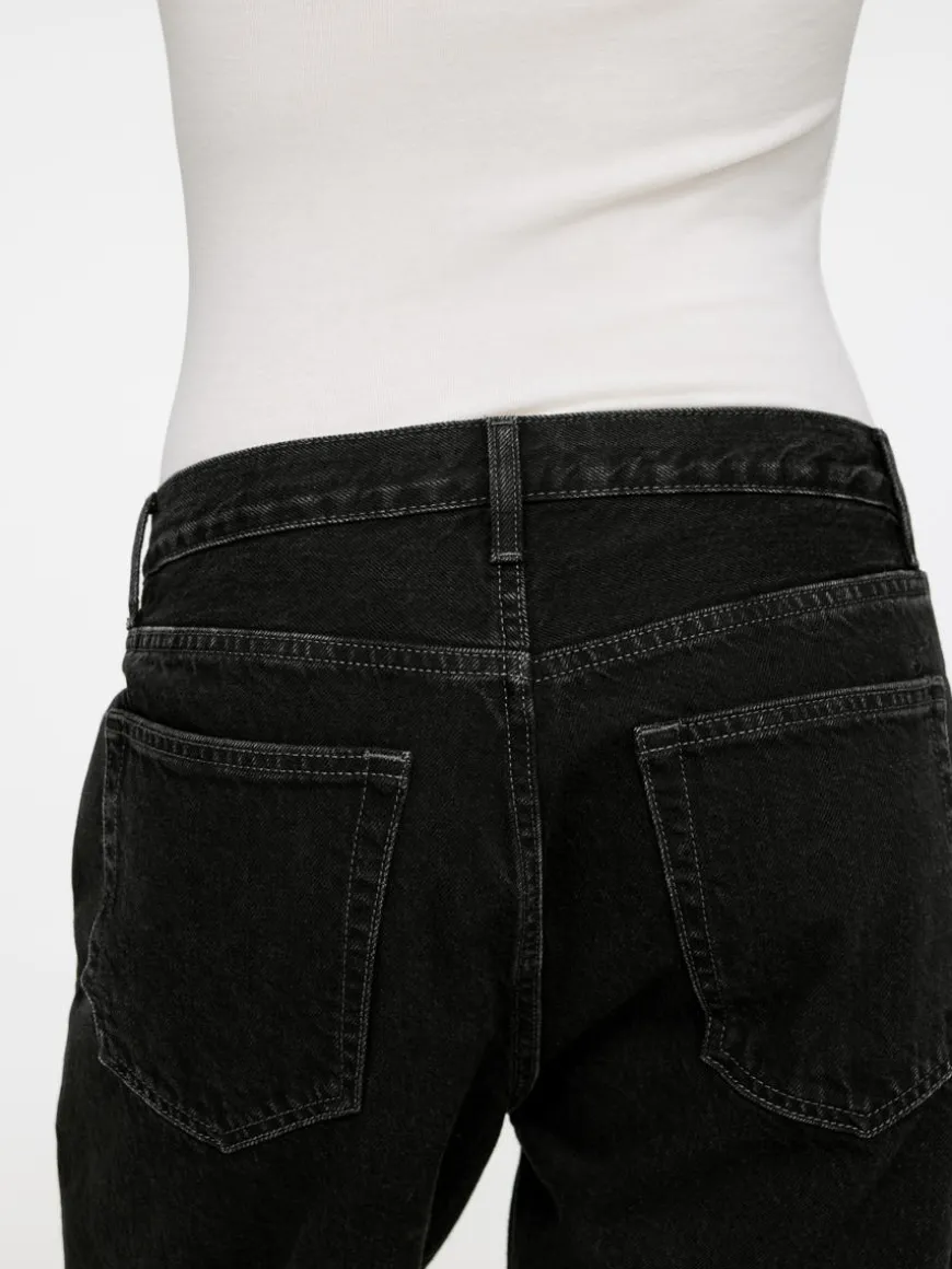 SHORE is cut from non-stretch denim and features a low-rise waist, relaxed fit and straight, loose legs. Button fly.