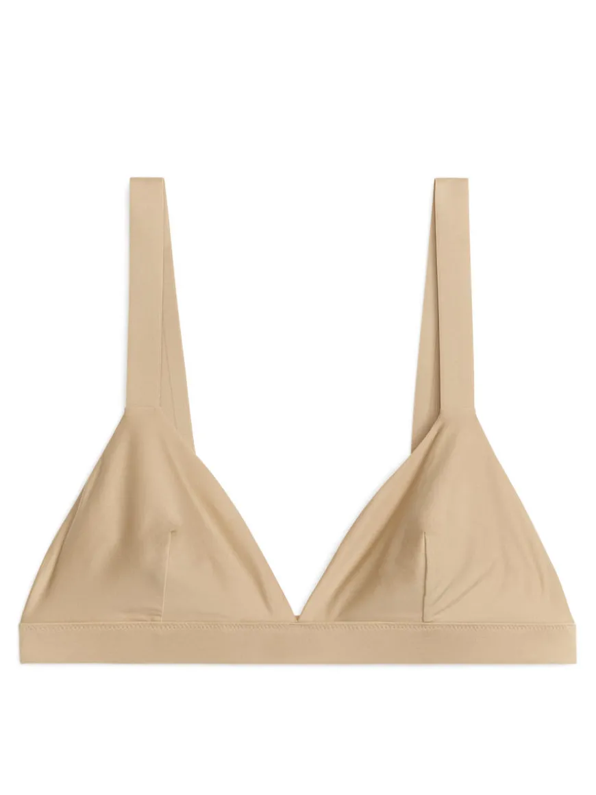Bra designed with double layer fabric and bonded edges for a clean look. Bust darts to provide an elevated fit around the chest. Shoulder strap width: 20 mm.