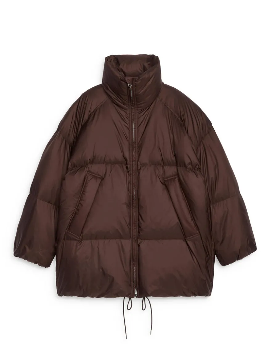 Relaxed jacket filled with a warming blend of down and feathers. Styled with a standing collar and zip closure. Welted zip pockets and drawstring at bottom hem. The Upcycled Down products are filled with recycled down and feathers sourced from Re:Down®. These materials, collected from used textiles, are washed and sterilised at high temperatures without the use of chemicals.