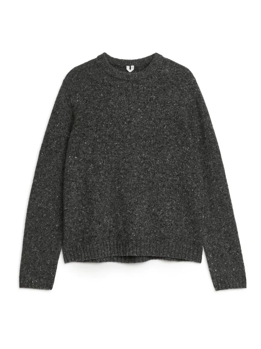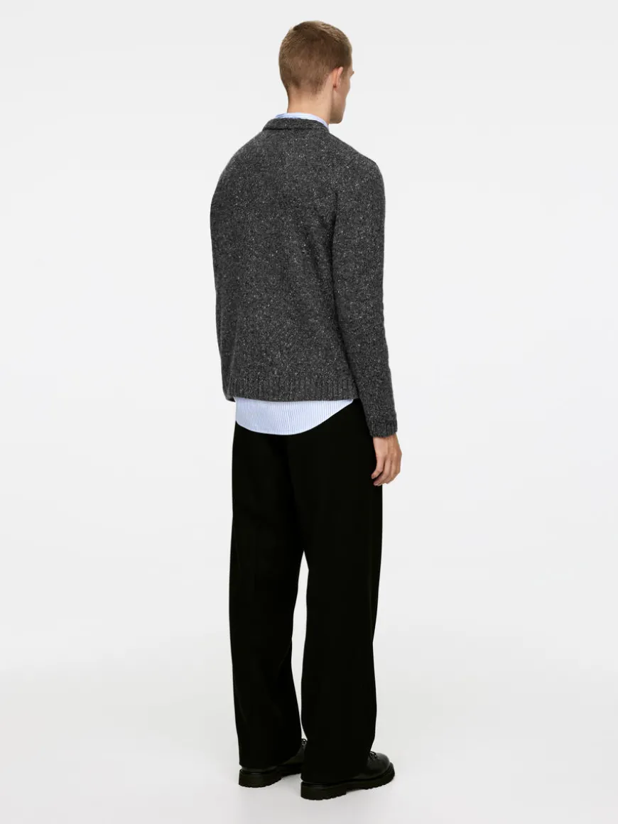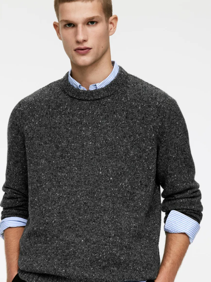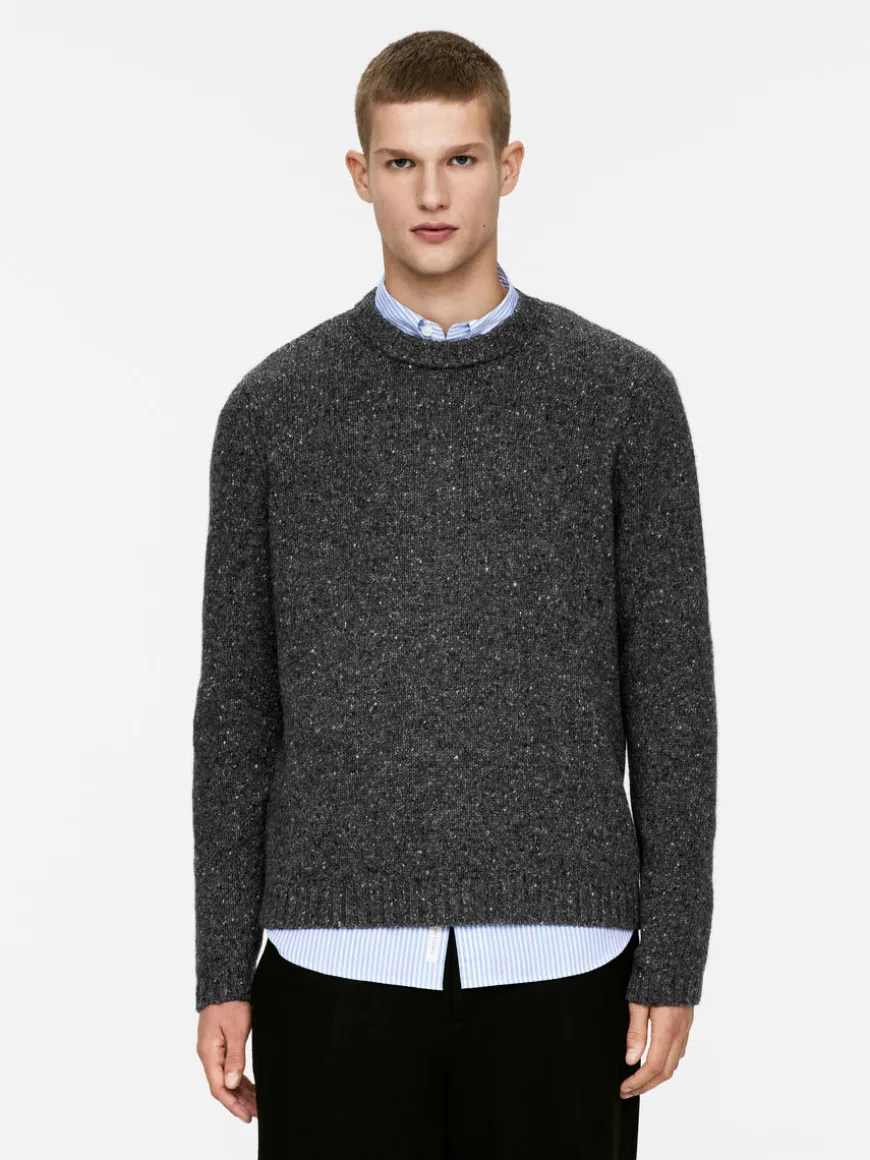 Straight-fit jumper knitted from a wool and alpaca yarn, making it both warm and soft to the touch. The neps texture and ribbed trims add a tactile finish.
