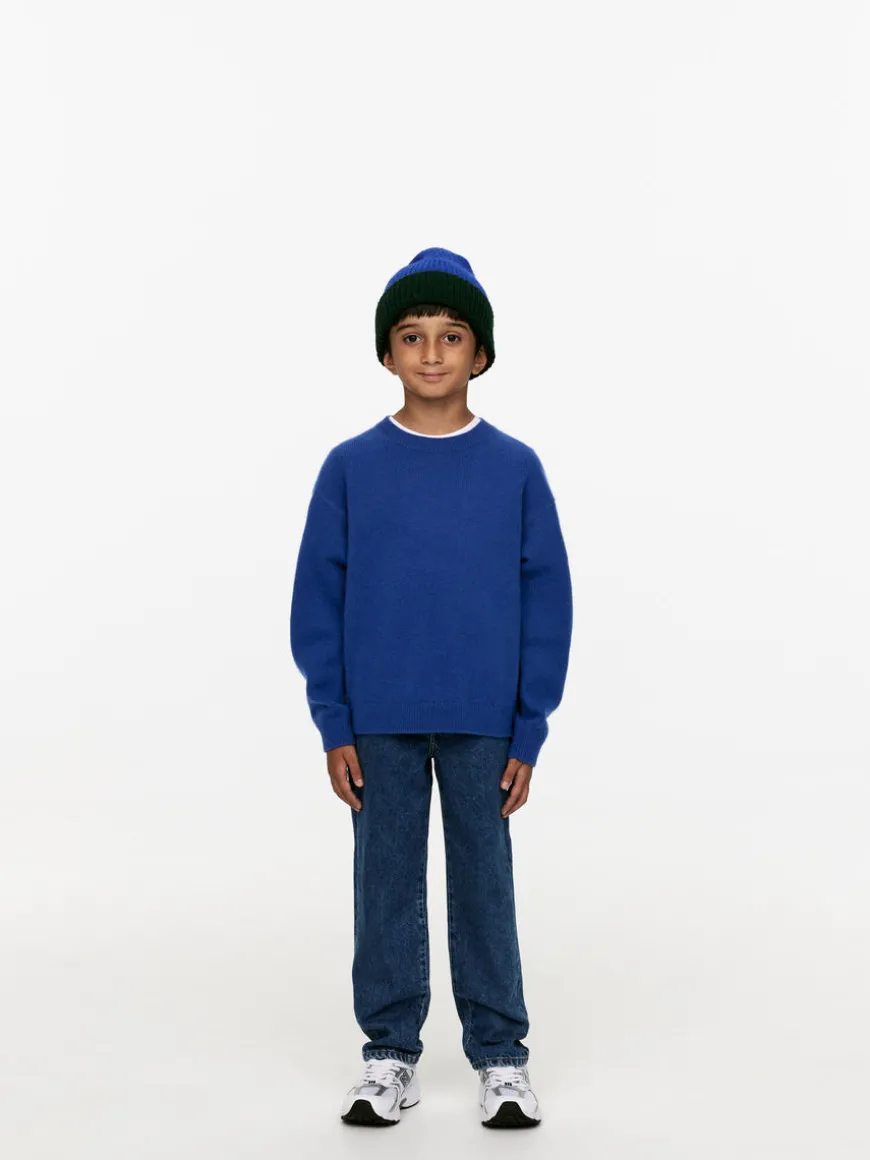 Crew-neck jumper in a wool blend. A plain-knitted style with ribbed trimmings.